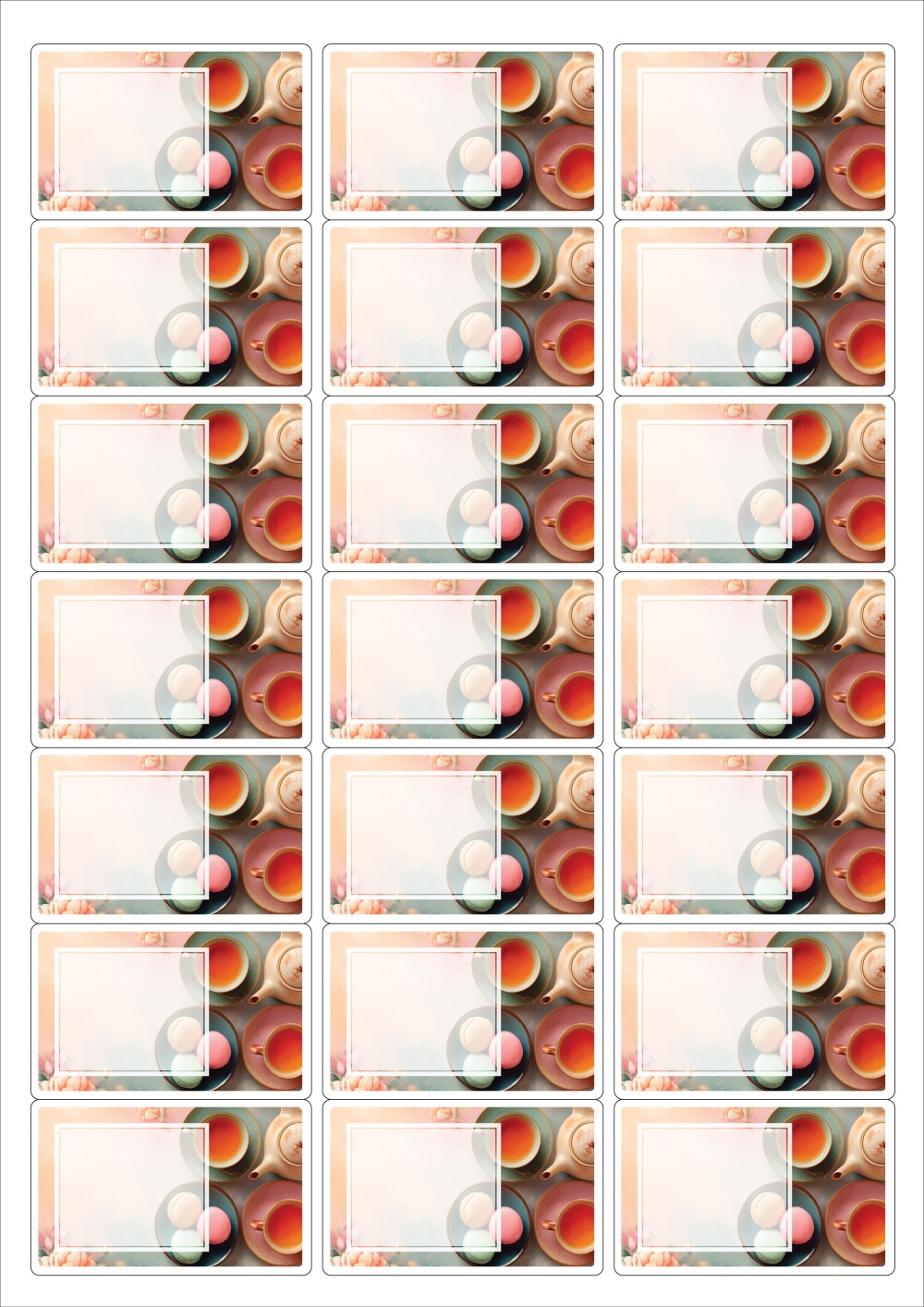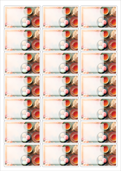 디자인된 A4 라벨지 출력용 라벨스티커, 규격코드: 437, 디자인코드: DA1431(향긋한 아침에), 63.8 x 39.97 (mm)