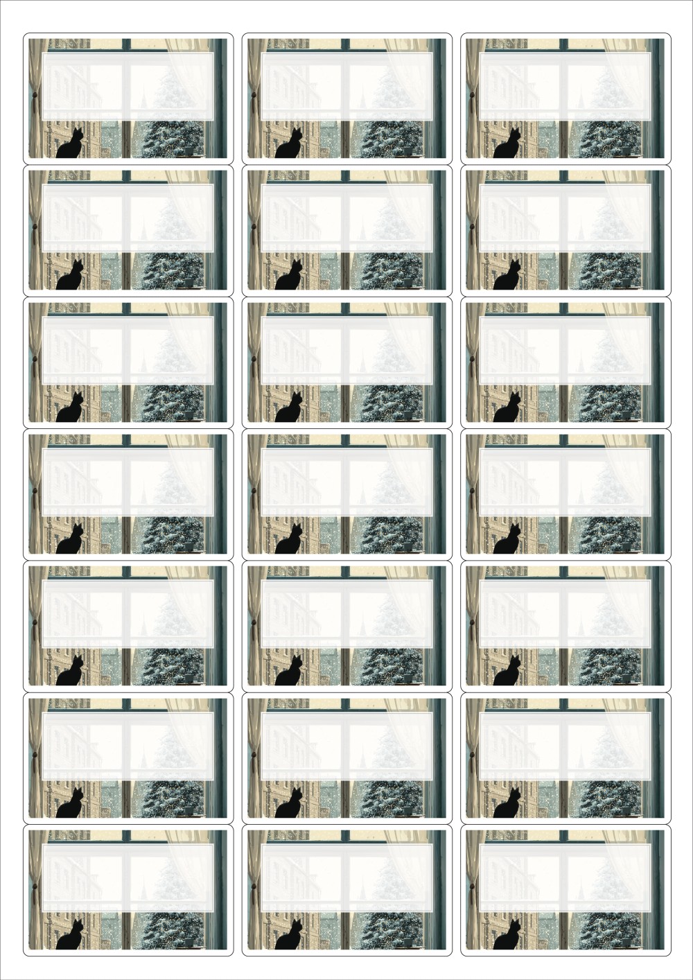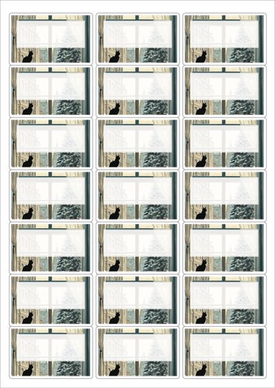 디자인된 A4 라벨지 출력용 라벨스티커, 규격코드: 437, 디자인코드: DA1494(오후엔 눈 그리고, 고양이), 63.8 x 39.97 (mm)