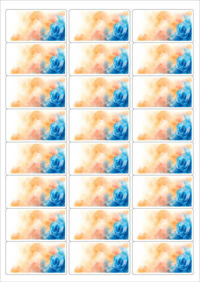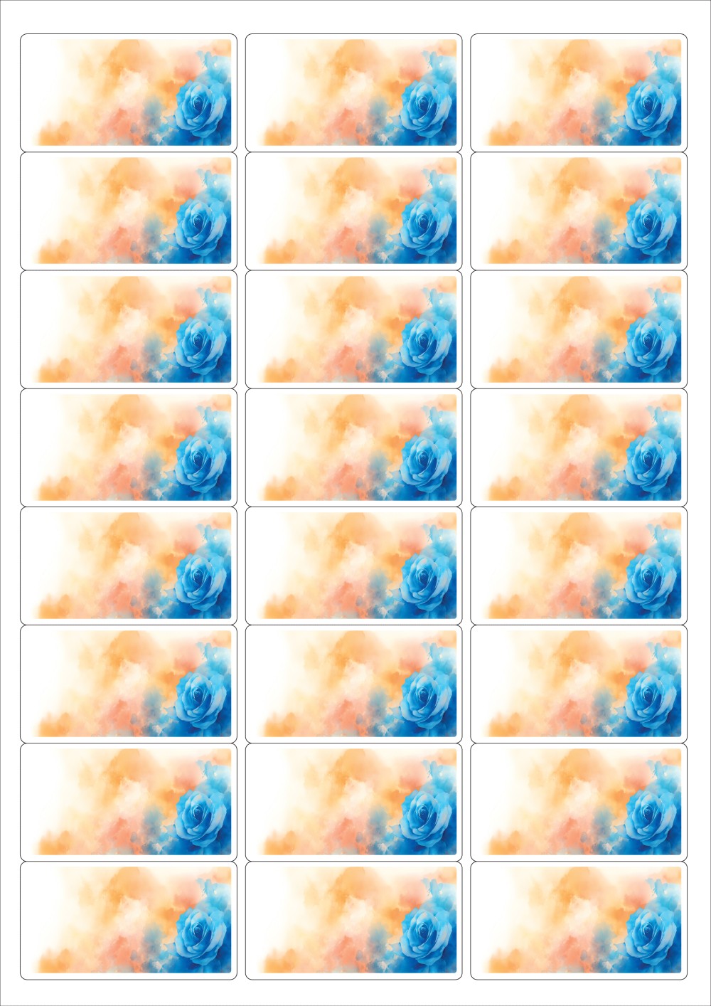 디자인된 A4 라벨지 출력용 라벨스티커, 규격코드: 438, 디자인코드: DA1410(감사의 파란 장미), 64 x 34.9 (mm)
