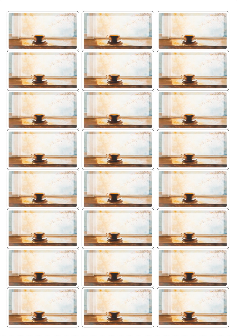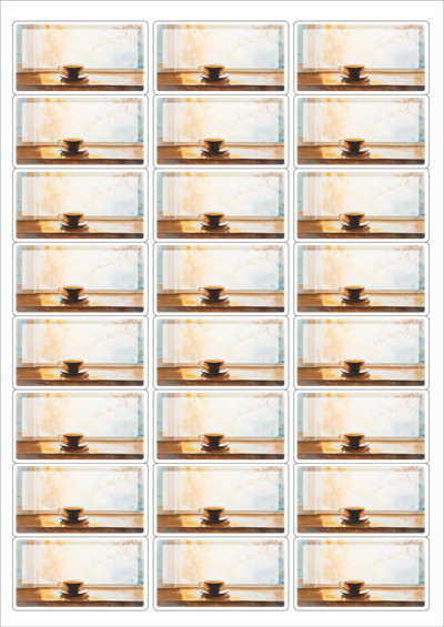 디자인된 A4 라벨지 출력용 라벨스티커, 규격코드: 438, 디자인코드: DA1425(가을날의 카페 창가에서), 64 x 34.9 (mm)