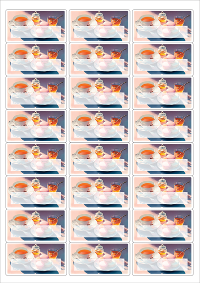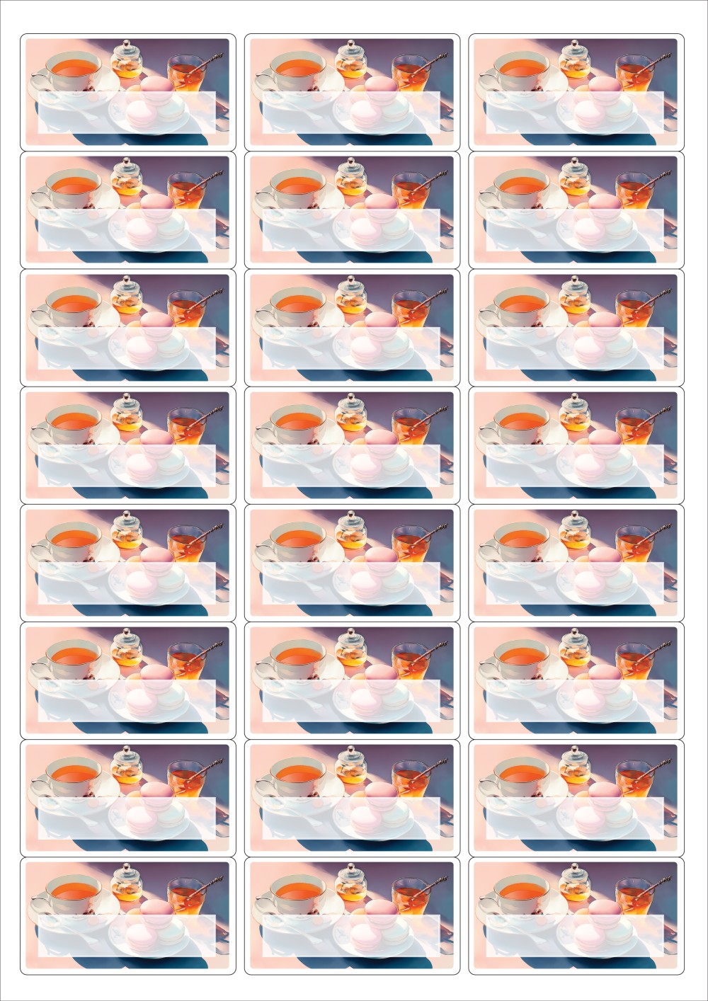 디자인된 A4 라벨지 출력용 라벨스티커, 규격코드: 438, 디자인코드: DA1430(브런치 타임), 64 x 34.9 (mm)