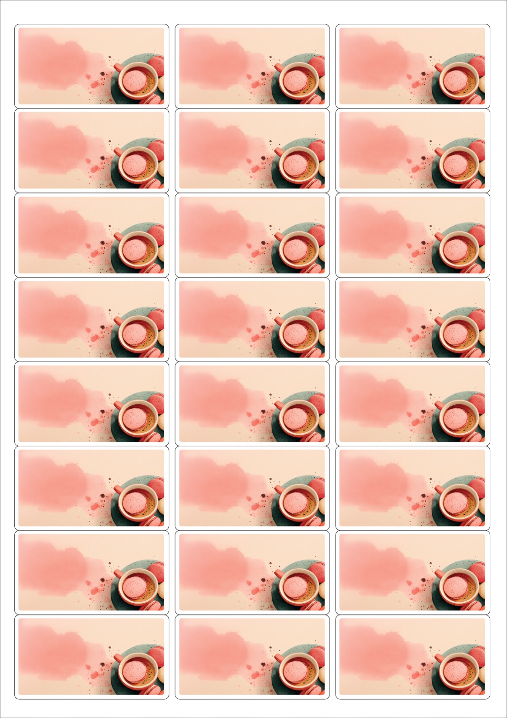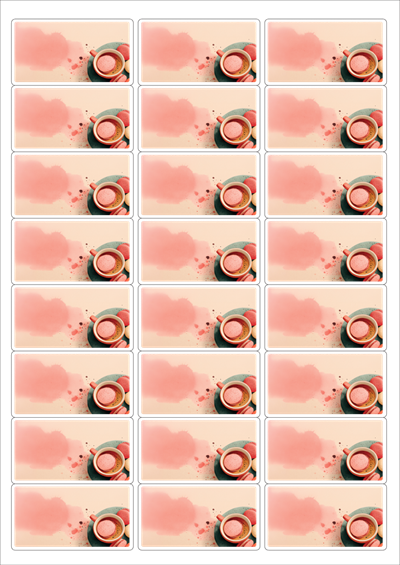 디자인된 A4 라벨지 출력용 라벨스티커, 규격코드: 438, 디자인코드: DA1444(마카롱 휴식타임), 64 x 34.9 (mm)