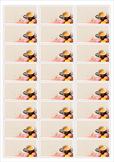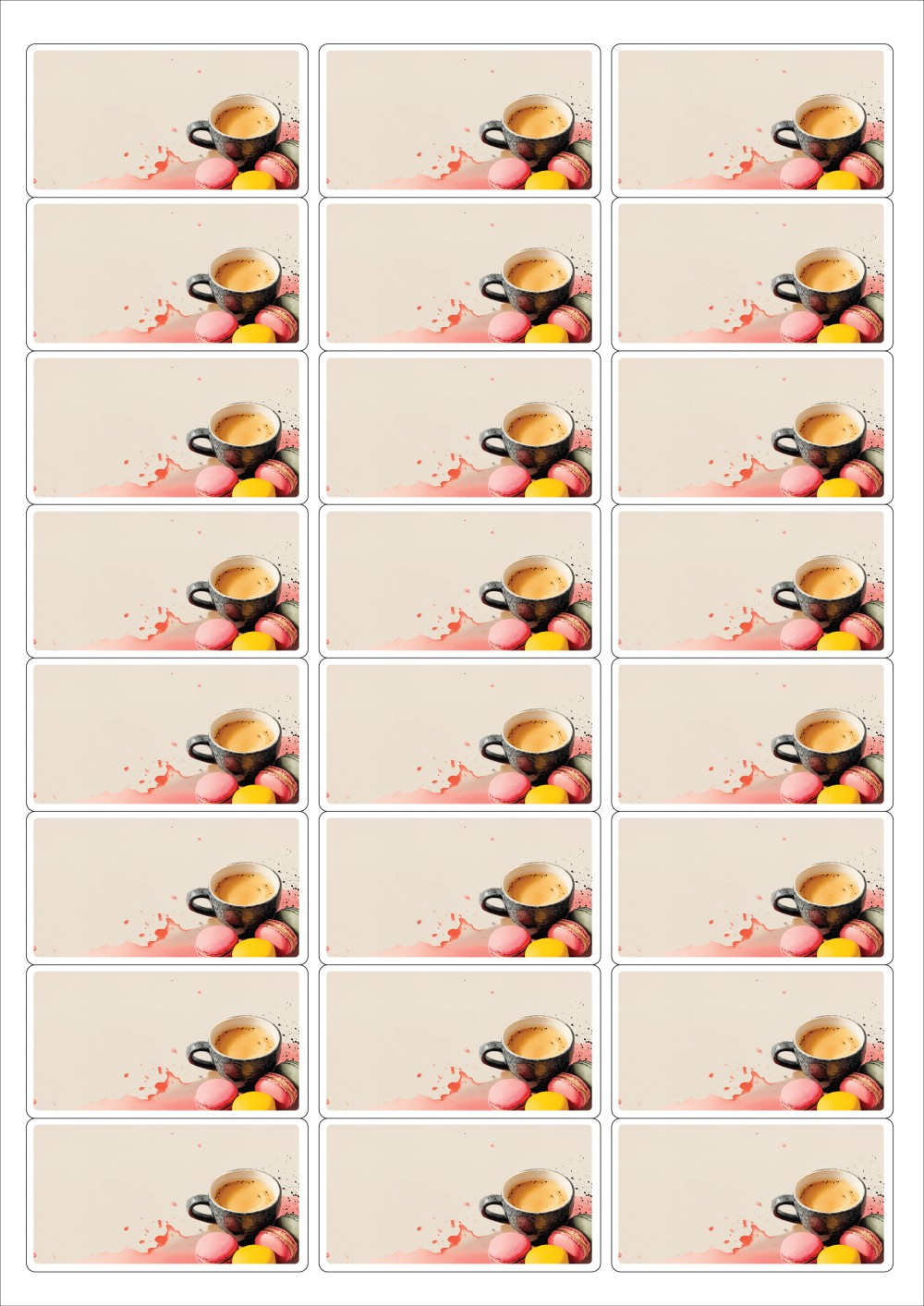 디자인된 A4 라벨지 출력용 라벨스티커, 규격코드: 438, 디자인코드: DA1445(차와 함께하는 즐거운 힐링타임), 64 x 34.9 (mm)