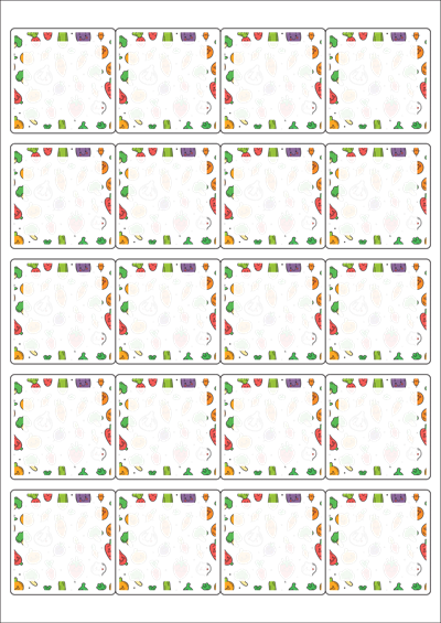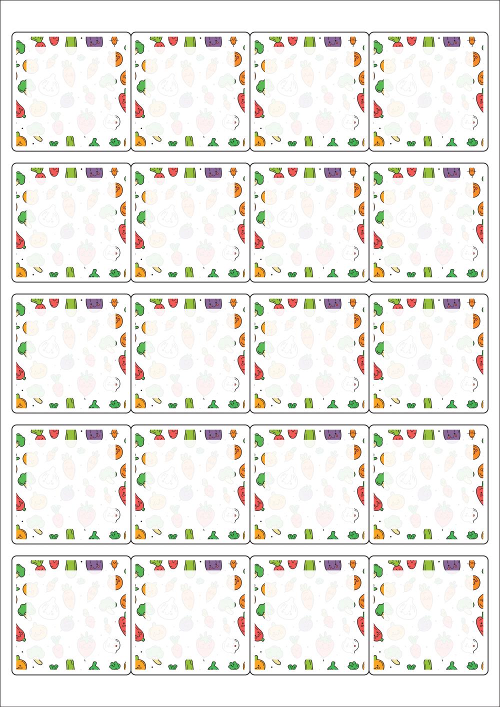 디자인된 A4 라벨지 출력용 라벨스티커, 규격코드: 445, 디자인코드: DA1376(건강한 야채 이야기), 50 x 50 (mm)
