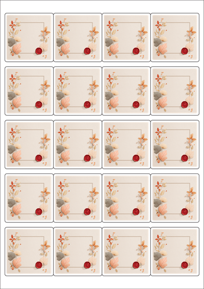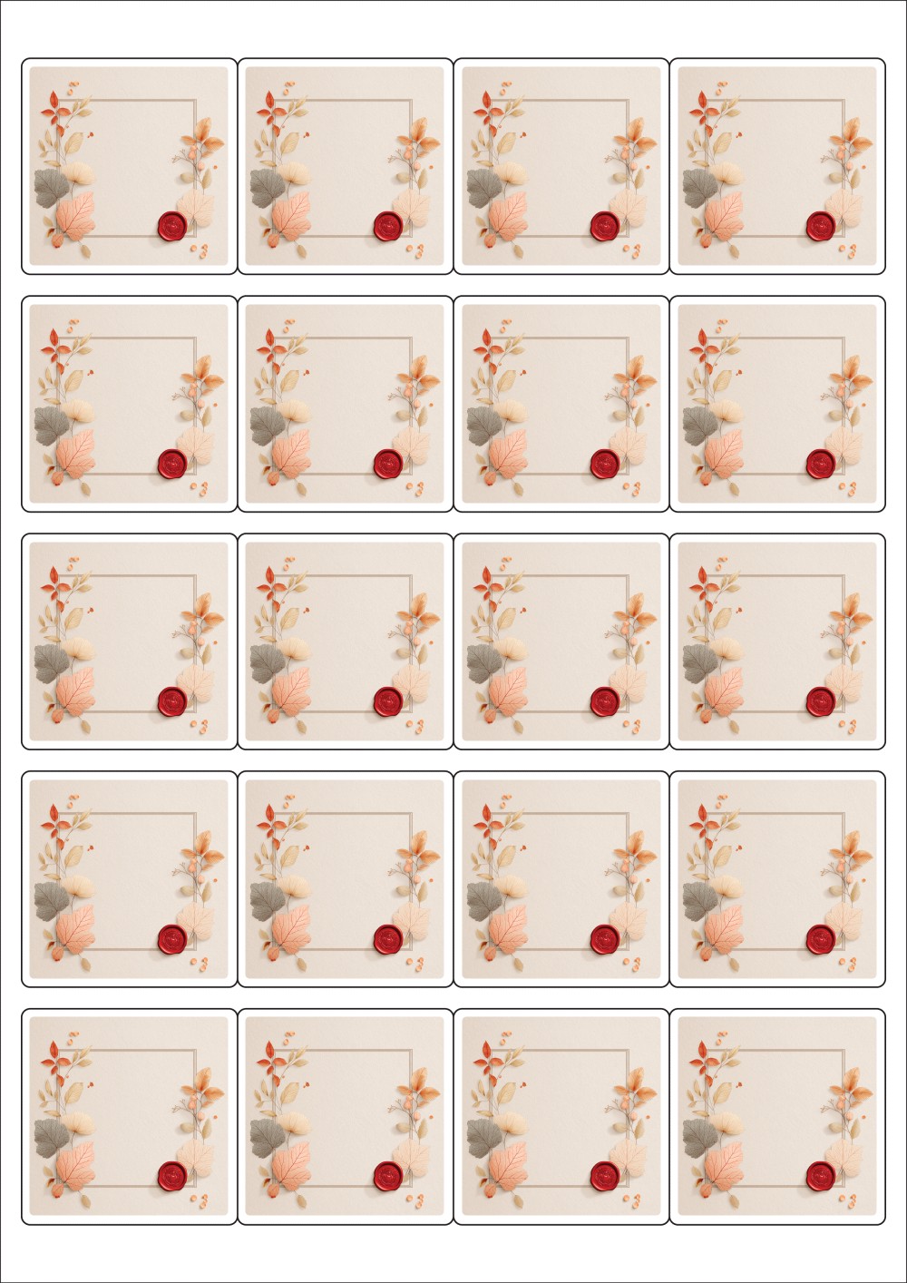 디자인된 A4 라벨지 출력용 라벨스티커, 규격코드: 445, 디자인코드: DA1429(가을날의 메세지2), 50 x 50 (mm)