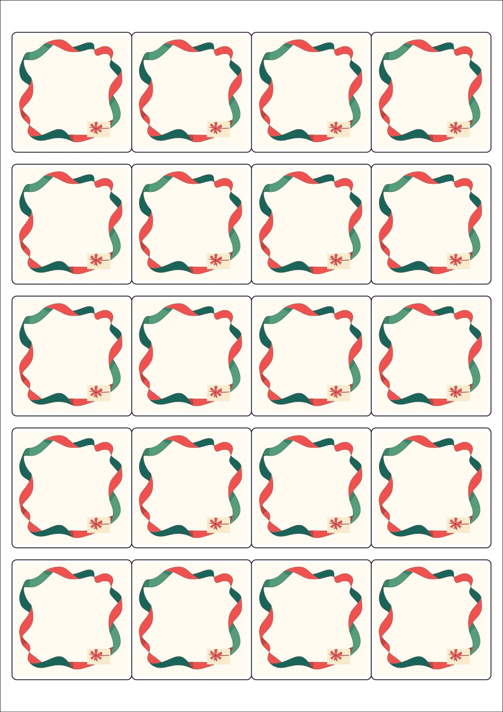 디자인된 A4 라벨지 출력용 라벨스티커, 규격코드: 445, 디자인코드: DA1455(리본 프레임2), 50 x 50 (mm)
