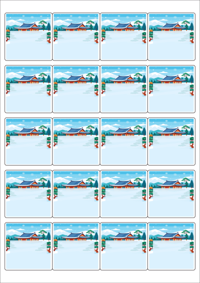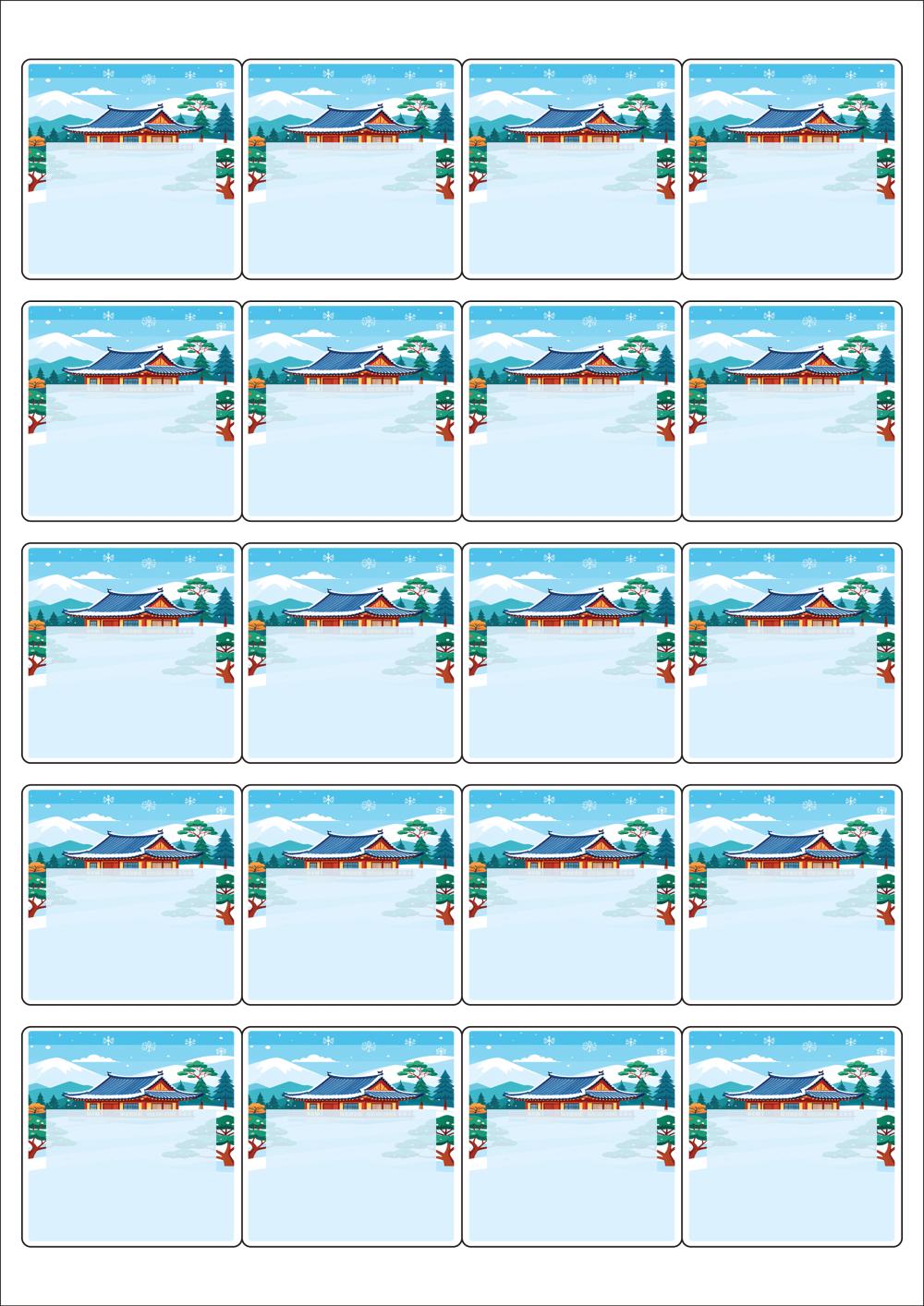 디자인된 A4 라벨지 출력용 라벨스티커, 규격코드: 445, 디자인코드: DA1567(설날의 아침1), 50 x 50 (mm)