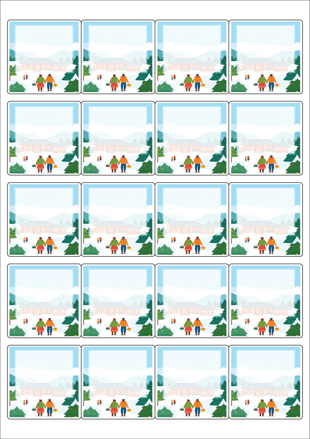 디자인된 A4 라벨지 출력용 라벨스티커, 규격코드: 445, 디자인코드: DA1569(설레는 설날의 아침), 50 x 50 (mm)