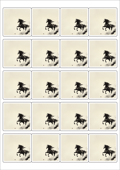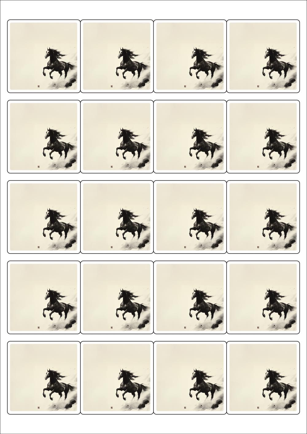 디자인된 A4 라벨지 출력용 라벨스티커, 규격코드: 445, 디자인코드: DA1570(함께 달리는 희망찬 새해), 50 x 50 (mm)