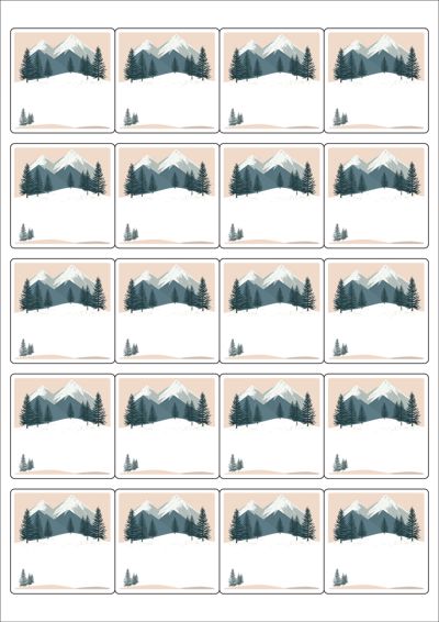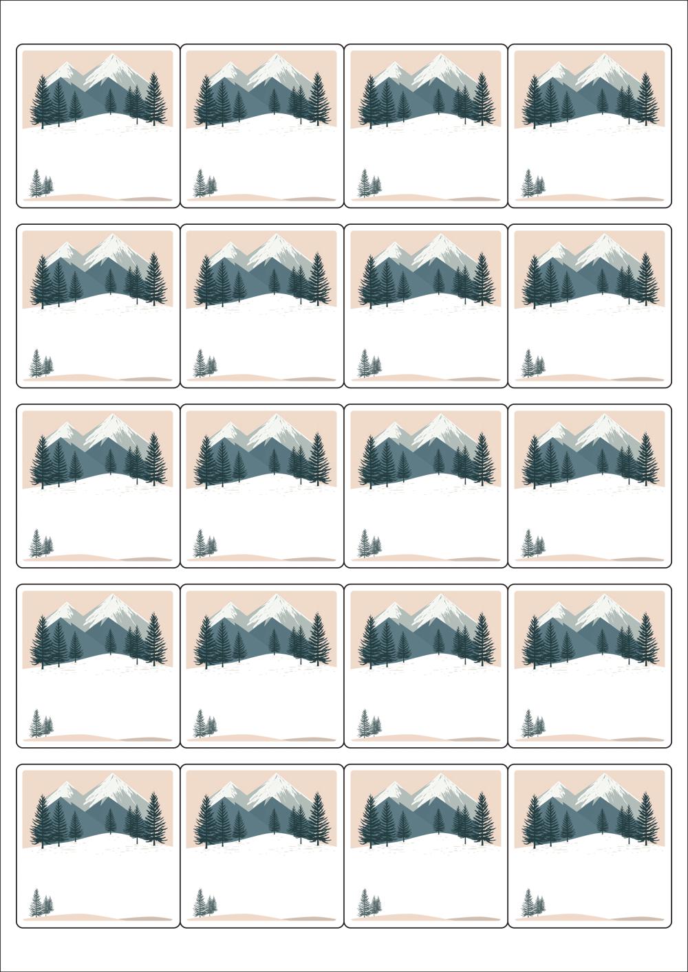 디자인된 A4 라벨지 출력용 라벨스티커, 규격코드: 445, 디자인코드: DA1582(저 잘지내요~ 겨울산에 인사), 50 x 50 (mm)