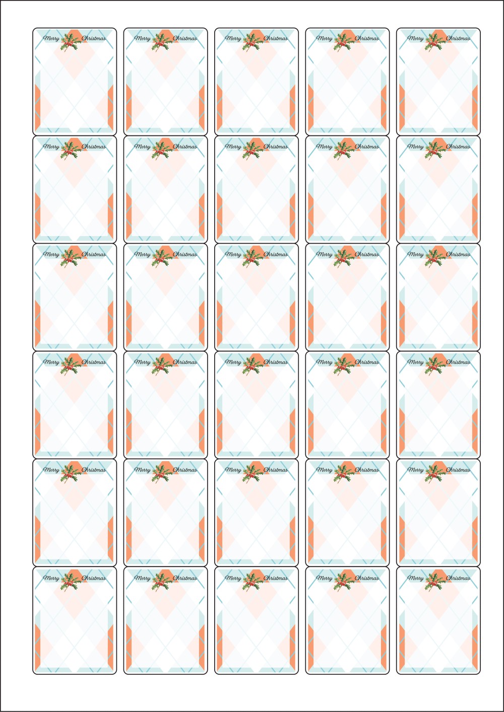 디자인된 A4 라벨지 출력용 라벨스티커, 규격코드: 456, 디자인코드: DA1453(메리크리스마스 . 사랑의 메세지), 35 x 45 (mm)