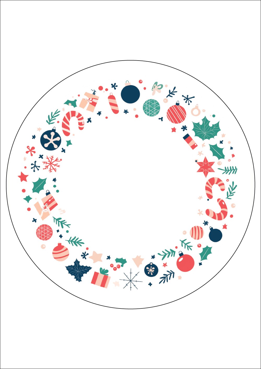 디자인된 A4 라벨지 출력용 라벨스티커, 규격코드: 501, 디자인코드: DA1457(어서오세요. 크리스마스), Φ200 (mm) 원형