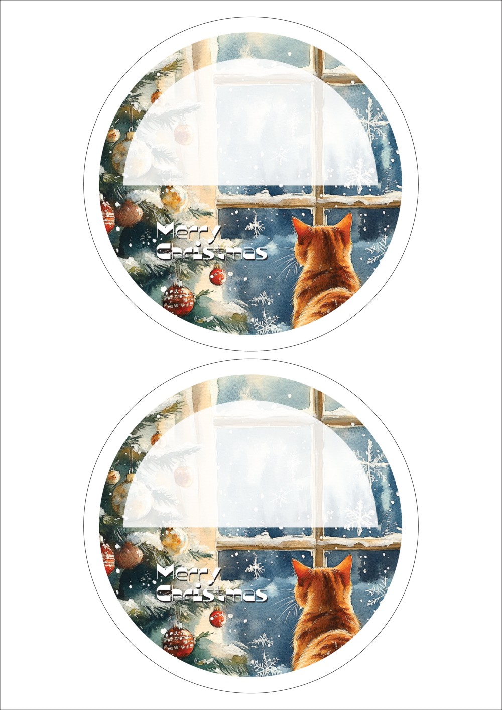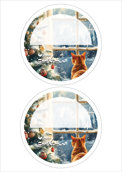 디자인된 A4 라벨지 출력용 라벨스티커, 규격코드: 502, 디자인코드: DA1496(메리크리스마스냥!), Φ140 (mm) 원형