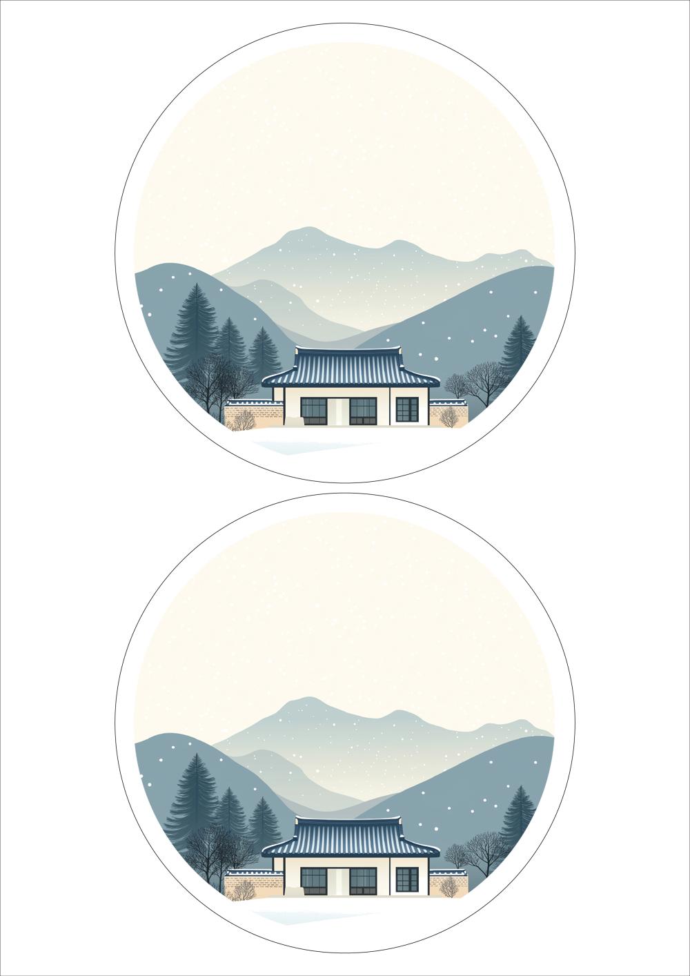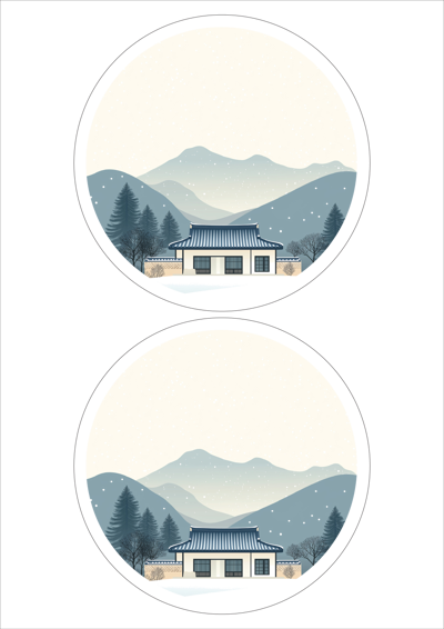 디자인된 A4 라벨지 출력용 라벨스티커, 규격코드: 502, 디자인코드: DA1581(설날의 감사의 인사), Φ140 (mm) 원형