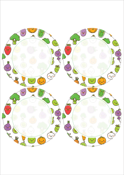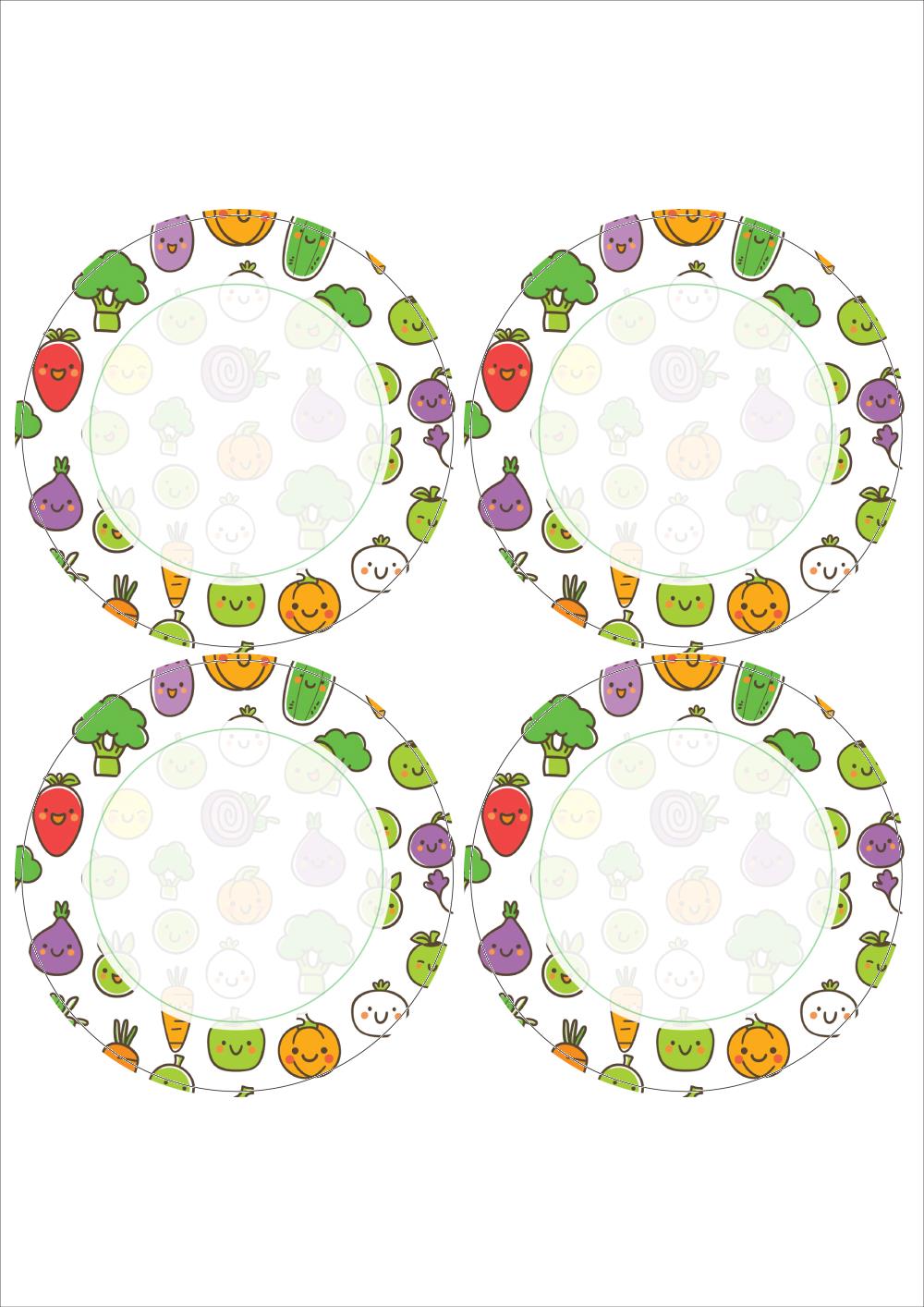 디자인된 A4 라벨지 출력용 라벨스티커, 규격코드: 504, 디자인코드: DA1377(건강한 야채 이야기), Φ98 (mm) 원형