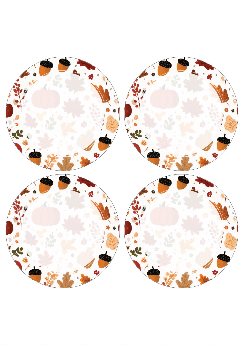 디자인된 A4 라벨지 출력용 라벨스티커, 규격코드: 504, 디자인코드: DA1443(가을 메세지 프레임 2), Φ98 (mm) 원형