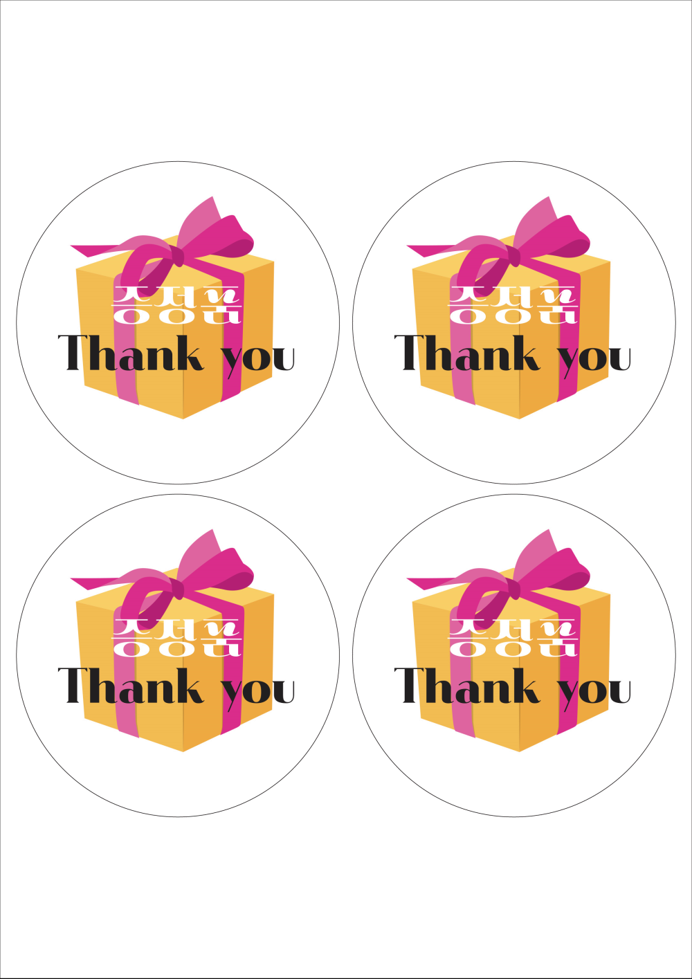 디자인된 A4 라벨지 출력용 라벨스티커, 규격코드: 504, 디자인코드: FA047(증정품 Thank you), Φ98 (mm) 원형