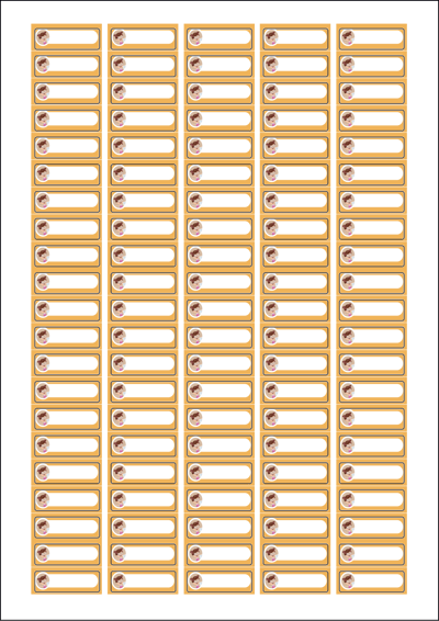 디자인된 A4 라벨지 출력용 라벨스티커, 규격코드: 505, 디자인코드: DA984(학용품 네임스티커), 31 x 10 (mm)