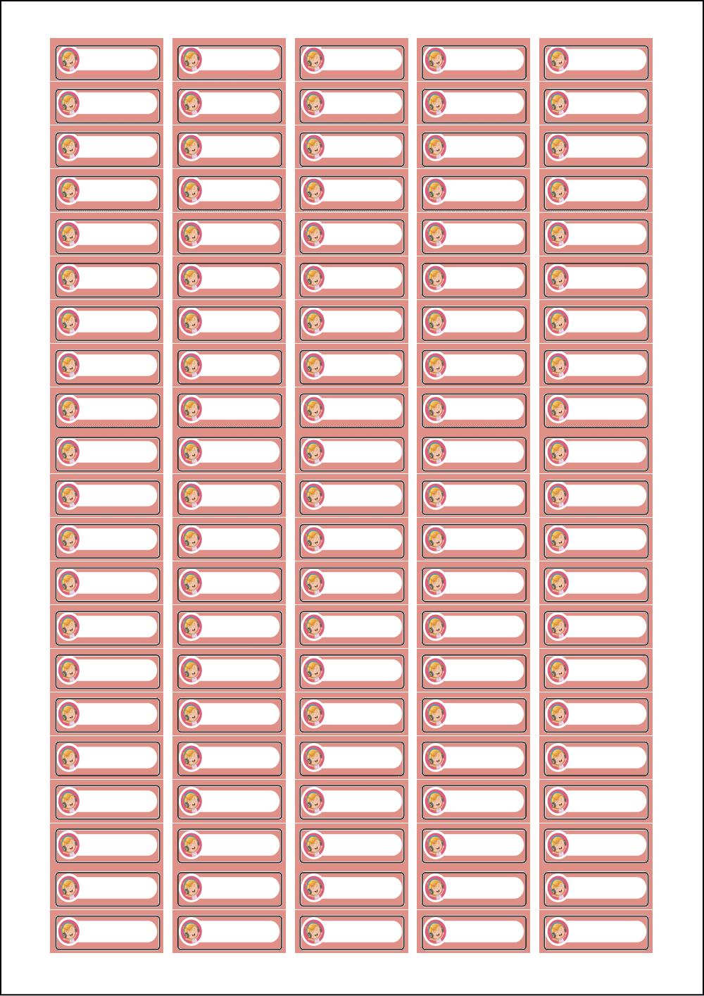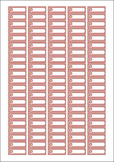 디자인된 A4 라벨지 출력용 라벨스티커, 규격코드: 505, 디자인코드: DA987(학용품 네임스티커), 31 x 10 (mm)