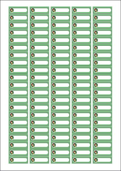 디자인된 A4 라벨지 출력용 라벨스티커, 규격코드: 505, 디자인코드: DA988(학용품 네임스티커), 31 x 10 (mm)