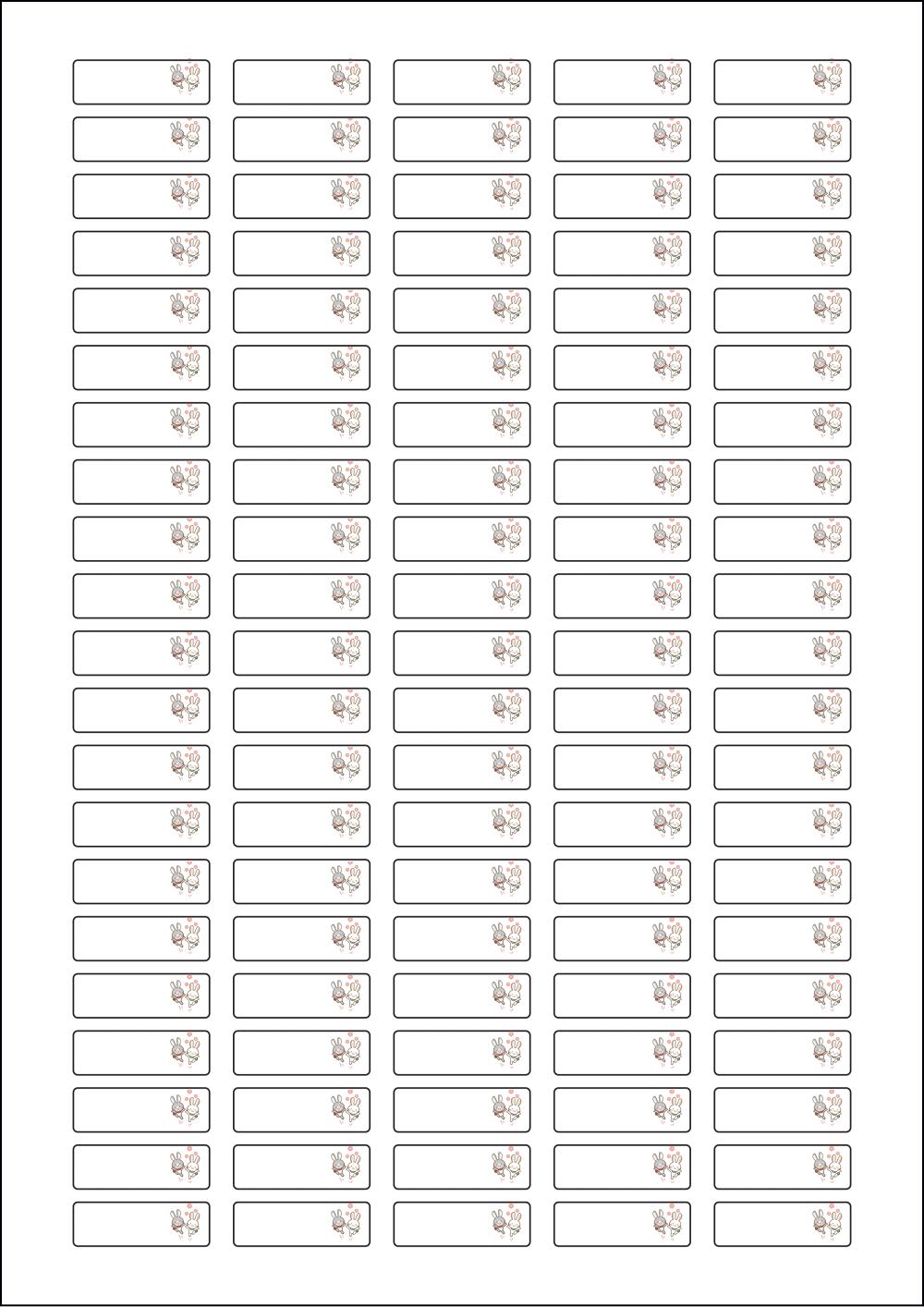 디자인된 A4 라벨지 출력용 라벨스티커, 규격코드: 505, 디자인코드: DV005(귀여운 토끼들과 함께가요!!), 31 x 10 (mm)