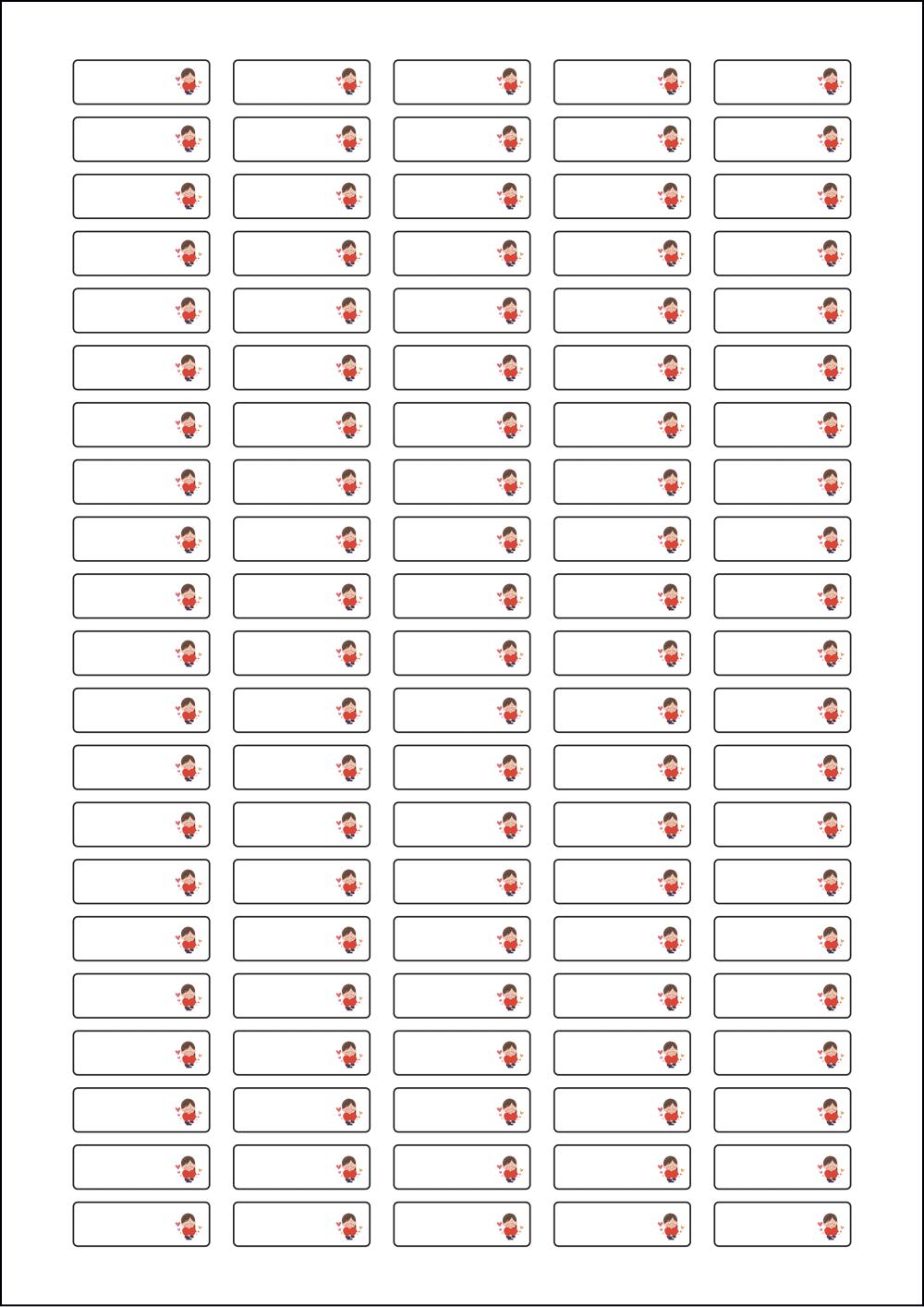 디자인된 A4 라벨지 출력용 라벨스티커, 규격코드: 505, 디자인코드: DV022(사랑의 마음을 담아서), 31 x 10 (mm)