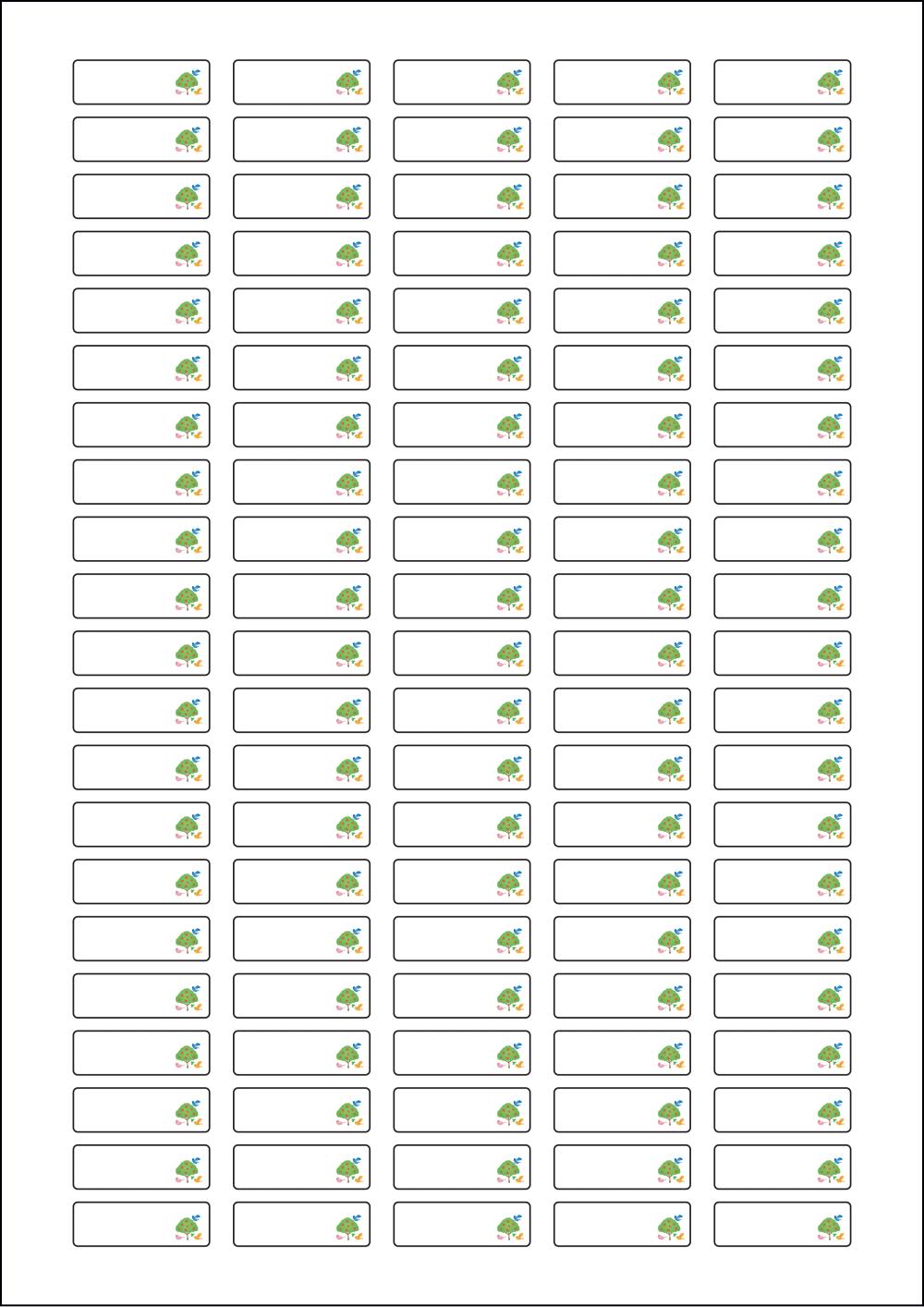 디자인된 A4 라벨지 출력용 라벨스티커, 규격코드: 505, 디자인코드: DV057(나무와 행복한 새들), 31 x 10 (mm)