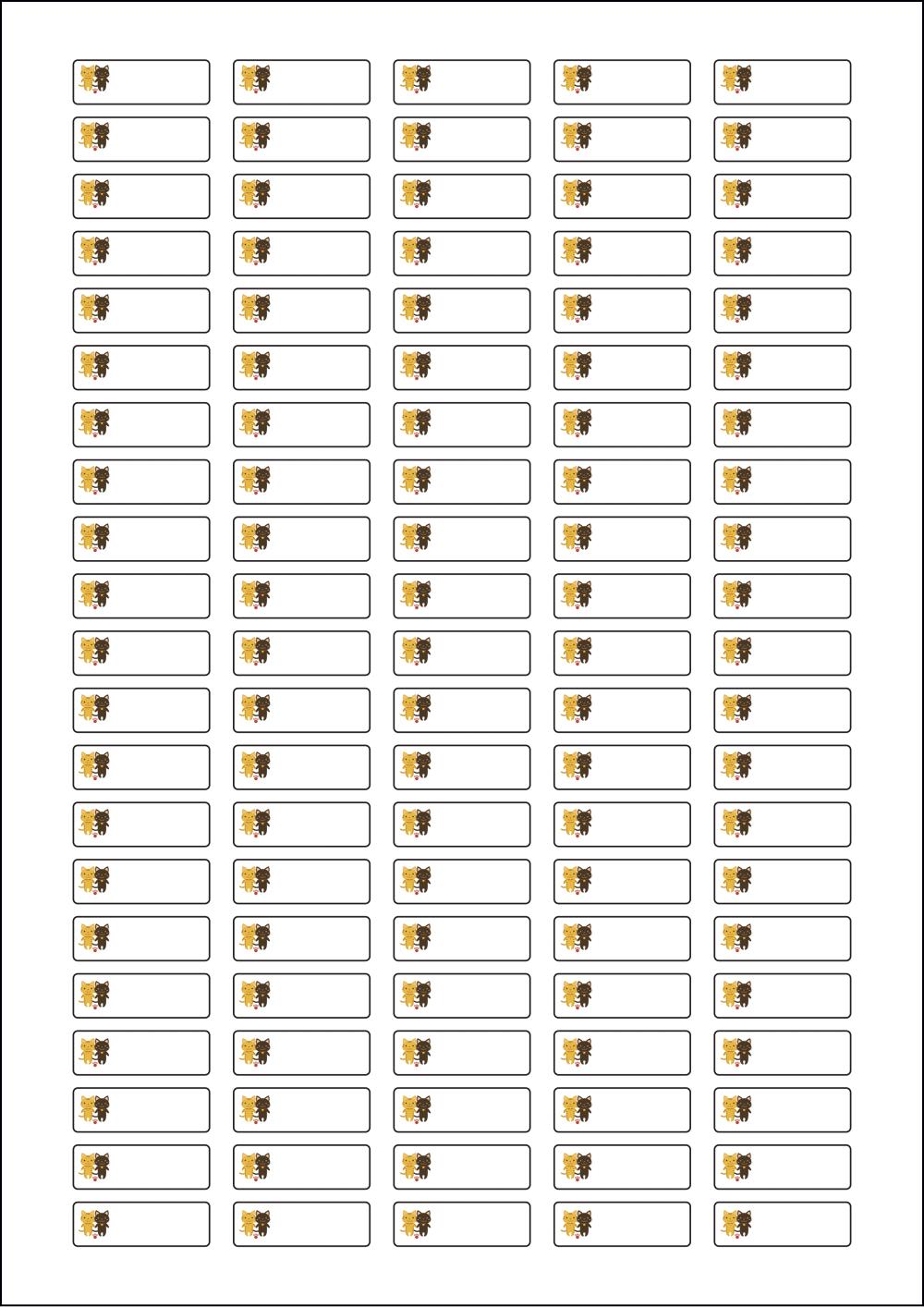 디자인된 A4 라벨지 출력용 라벨스티커, 규격코드: 505, 디자인코드: DX013(렛츠 고! 냐옹냐옹), 31 x 10 (mm)