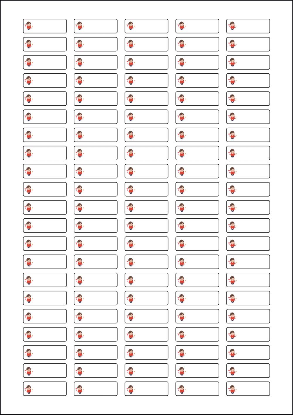디자인된 A4 라벨지 출력용 라벨스티커, 규격코드: 505, 디자인코드: DX022(사랑의 마음을 담아서), 31 x 10 (mm)
