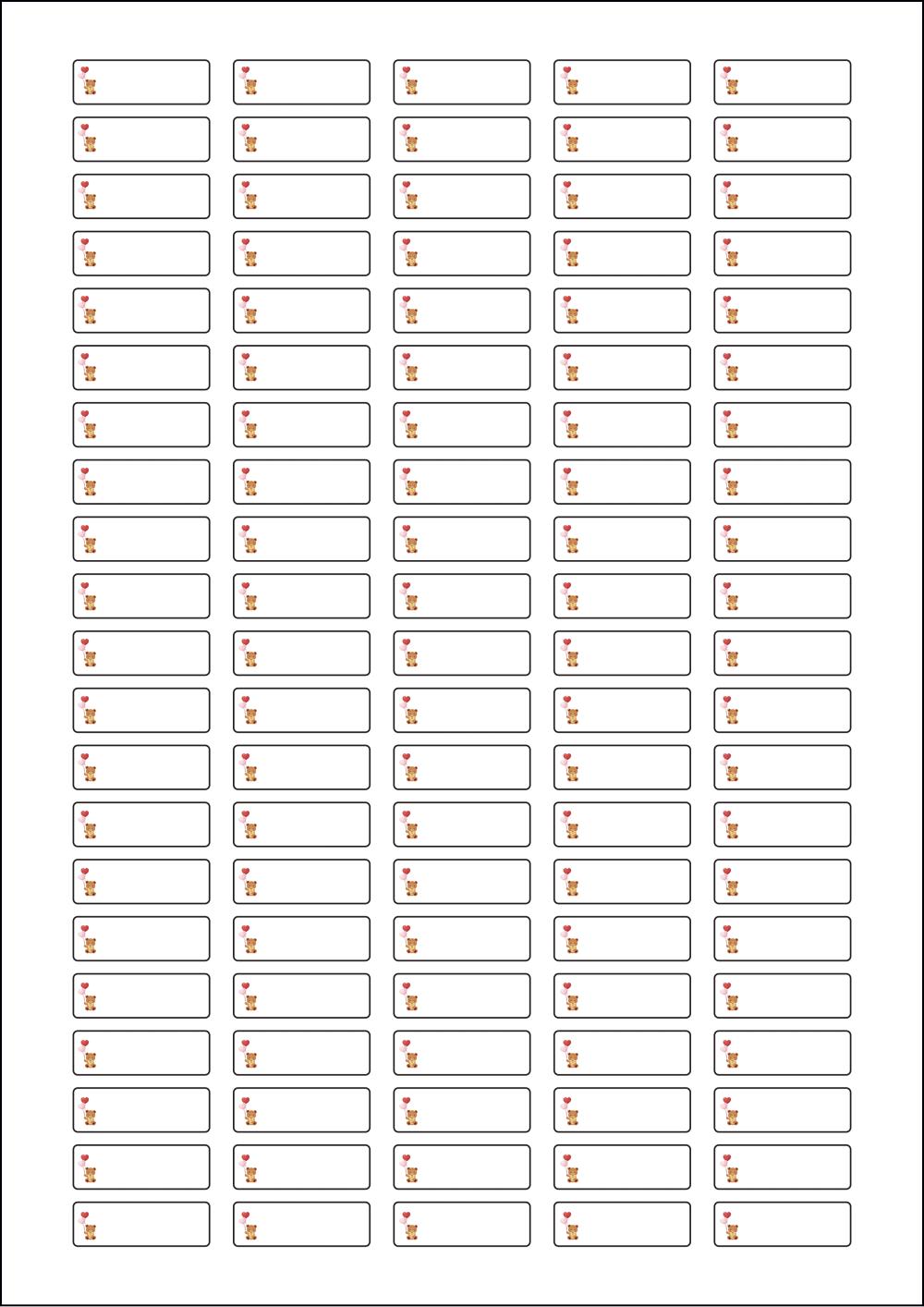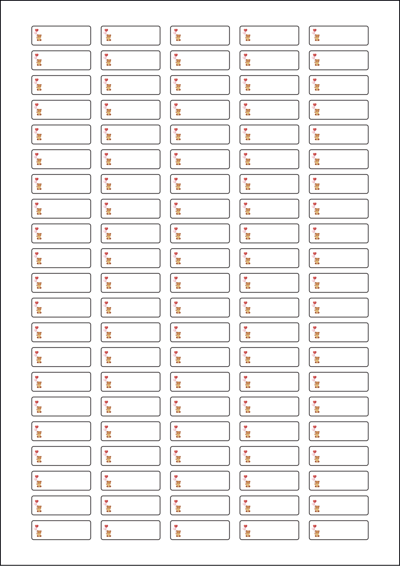 디자인된 A4 라벨지 출력용 라벨스티커, 규격코드: 505, 디자인코드: DX028(사랑의 전령 곰), 31 x 10 (mm)