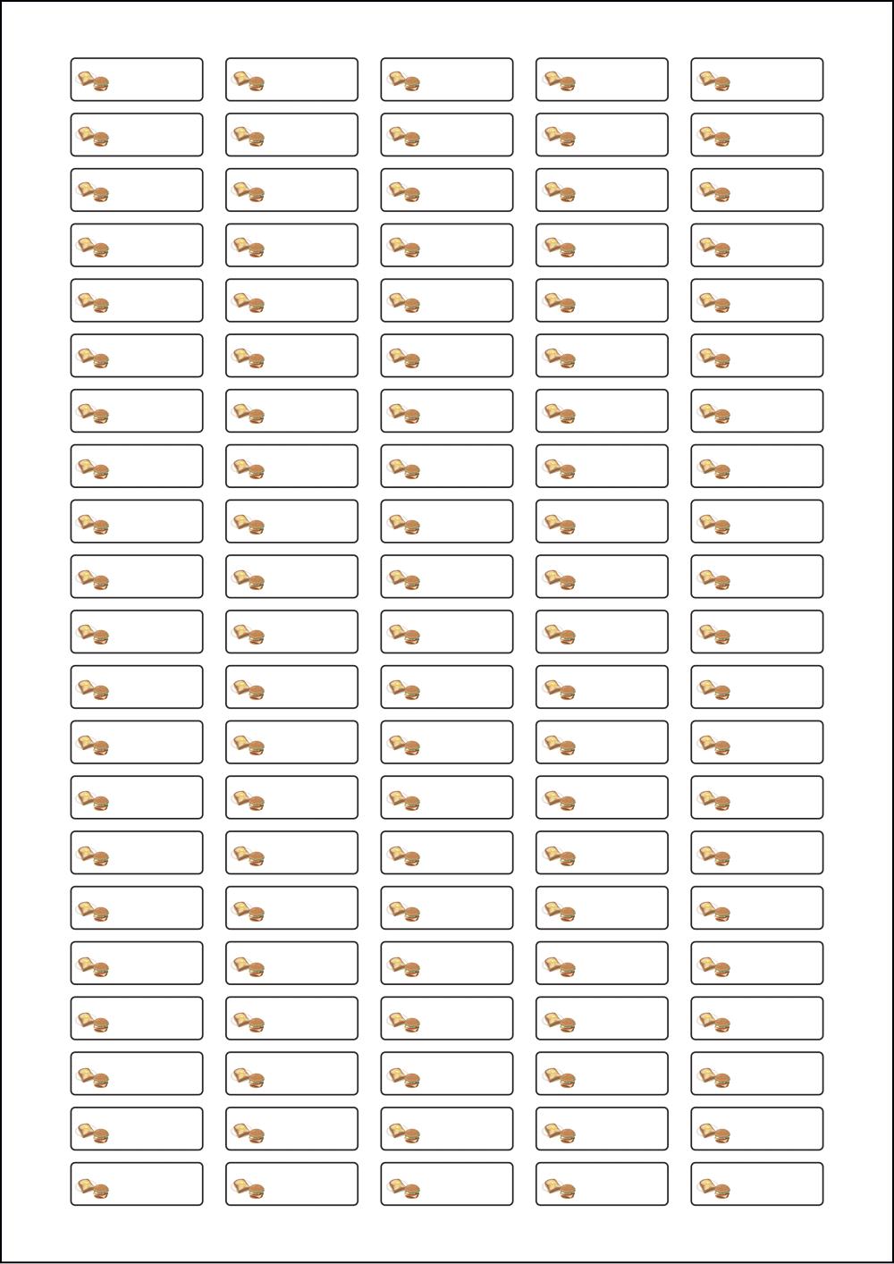 디자인된 A4 라벨지 출력용 라벨스티커, 규격코드: 505, 디자인코드: DX070(햄버거, 토스트 둘 다 좋아요!), 31 x 10 (mm)