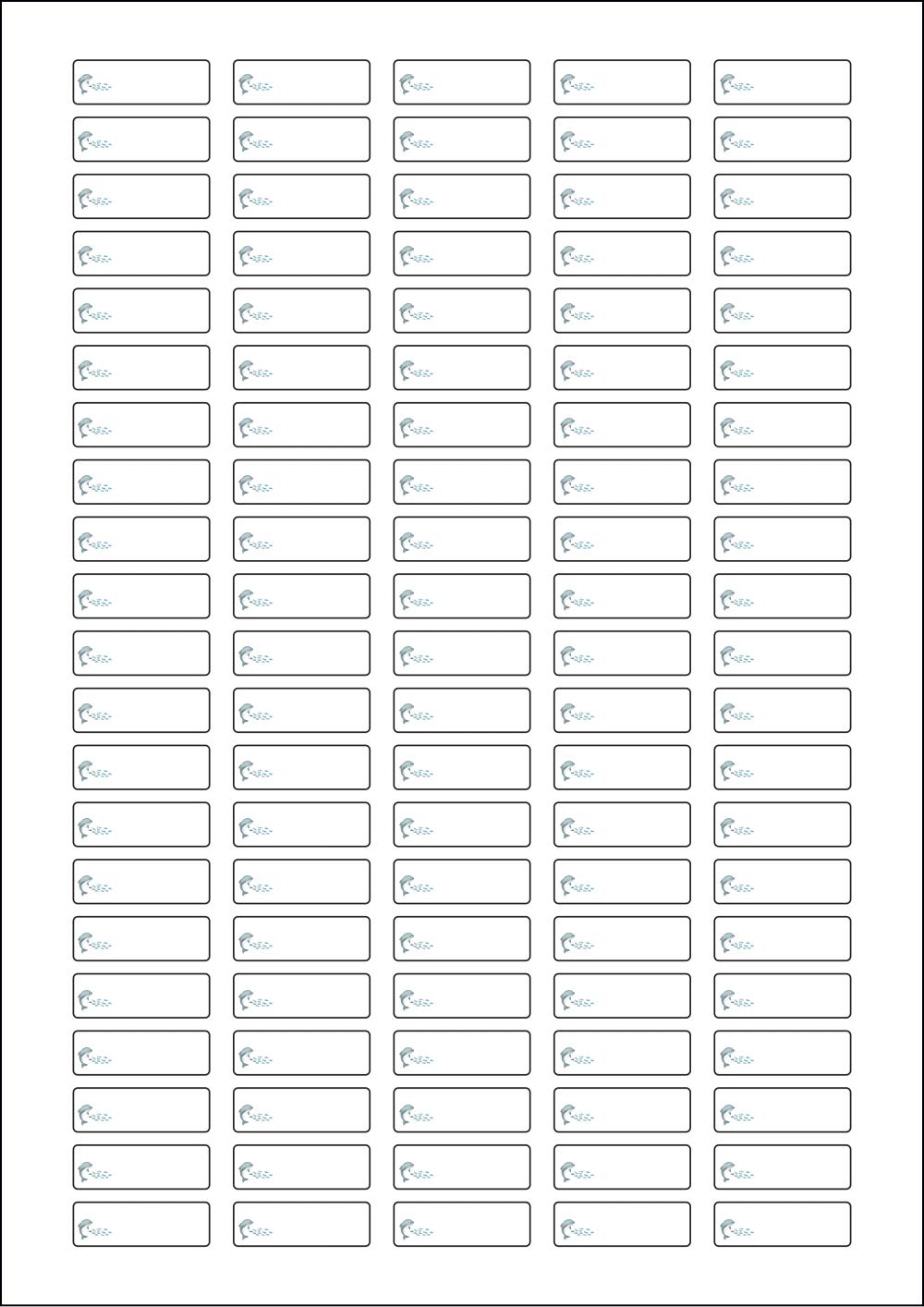 디자인된 A4 라벨지 출력용 라벨스티커, 규격코드: 505, 디자인코드: DX082(아기돌고래 핀과 놀아요), 31 x 10 (mm)