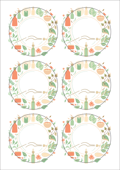 디자인된 A4 라벨지 출력용 라벨스티커, 규격코드: 506, 디자인코드: DA1407(아로마 프레임), Φ85 (mm) 원형