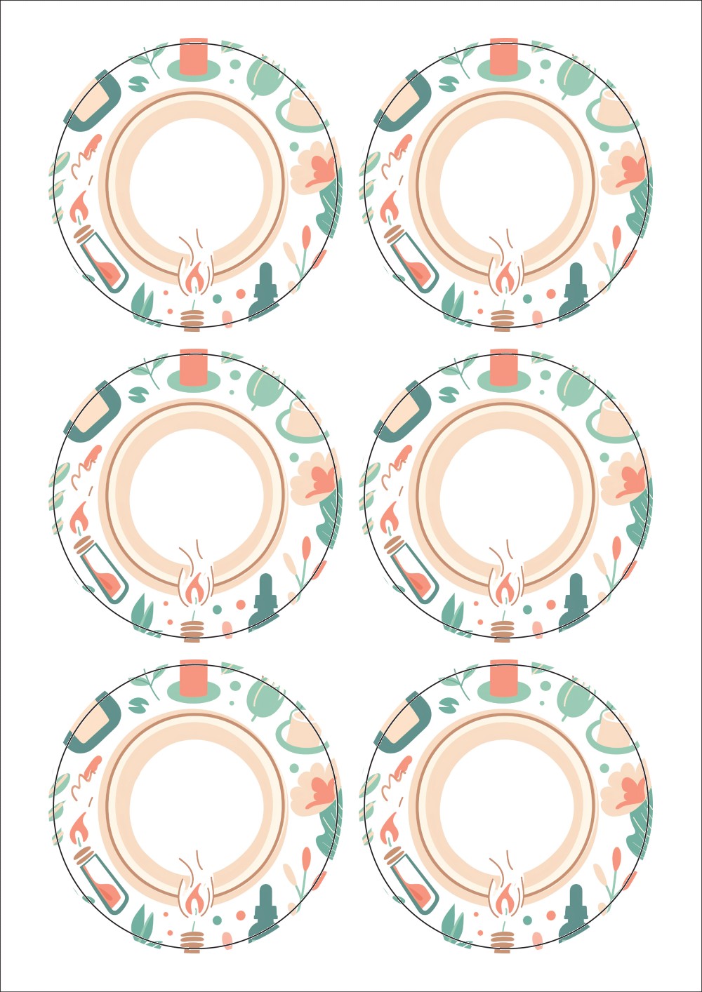 디자인된 A4 라벨지 출력용 라벨스티커, 규격코드: 506, 디자인코드: DA1408(힐링 메세지), Φ85 (mm) 원형