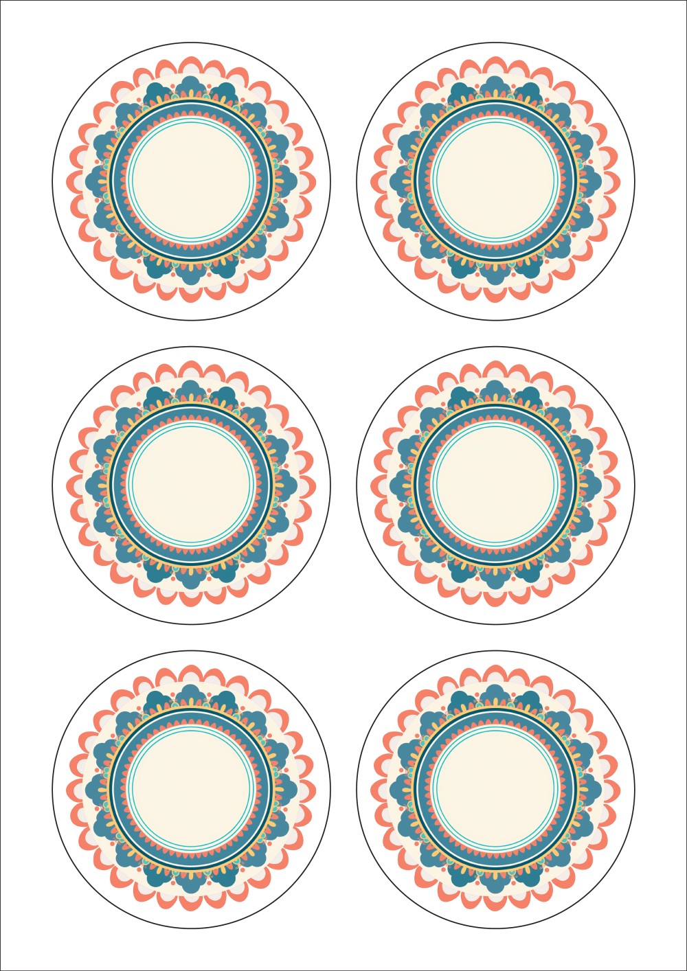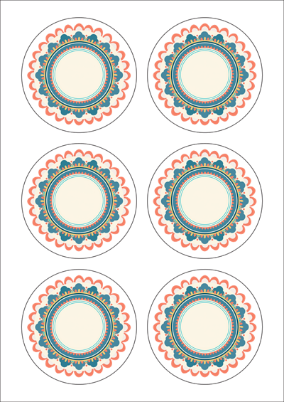 디자인된 A4 라벨지 출력용 라벨스티커, 규격코드: 506, 디자인코드: DA1418(단청 받침), Φ85 (mm) 원형