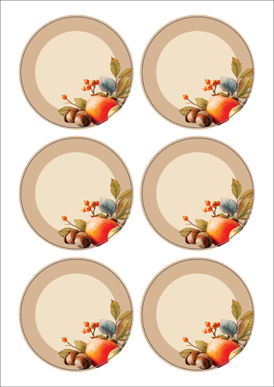 디자인된 A4 라벨지 출력용 라벨스티커, 규격코드: 506, 디자인코드: DA1452(수확의 계절, 감사의 마음을 담아서), Φ85 (mm) 원형