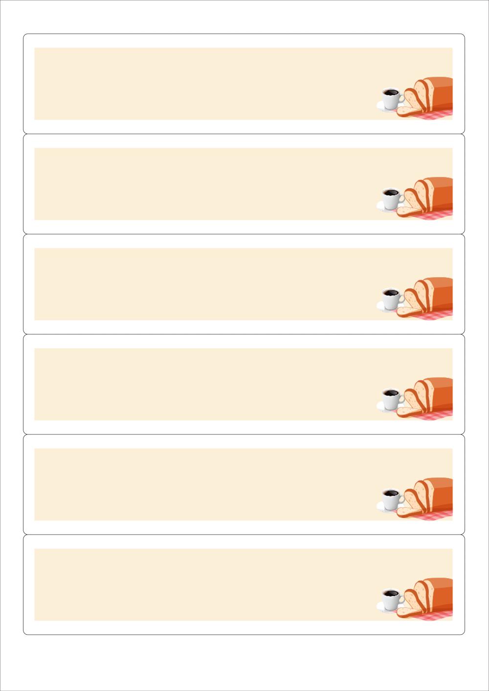 디자인된 A4 라벨지 출력용 라벨스티커, 규격코드: 516, 디자인코드: DA1649(심플한 아침식사), 189.6 x 43.05 (mm)
