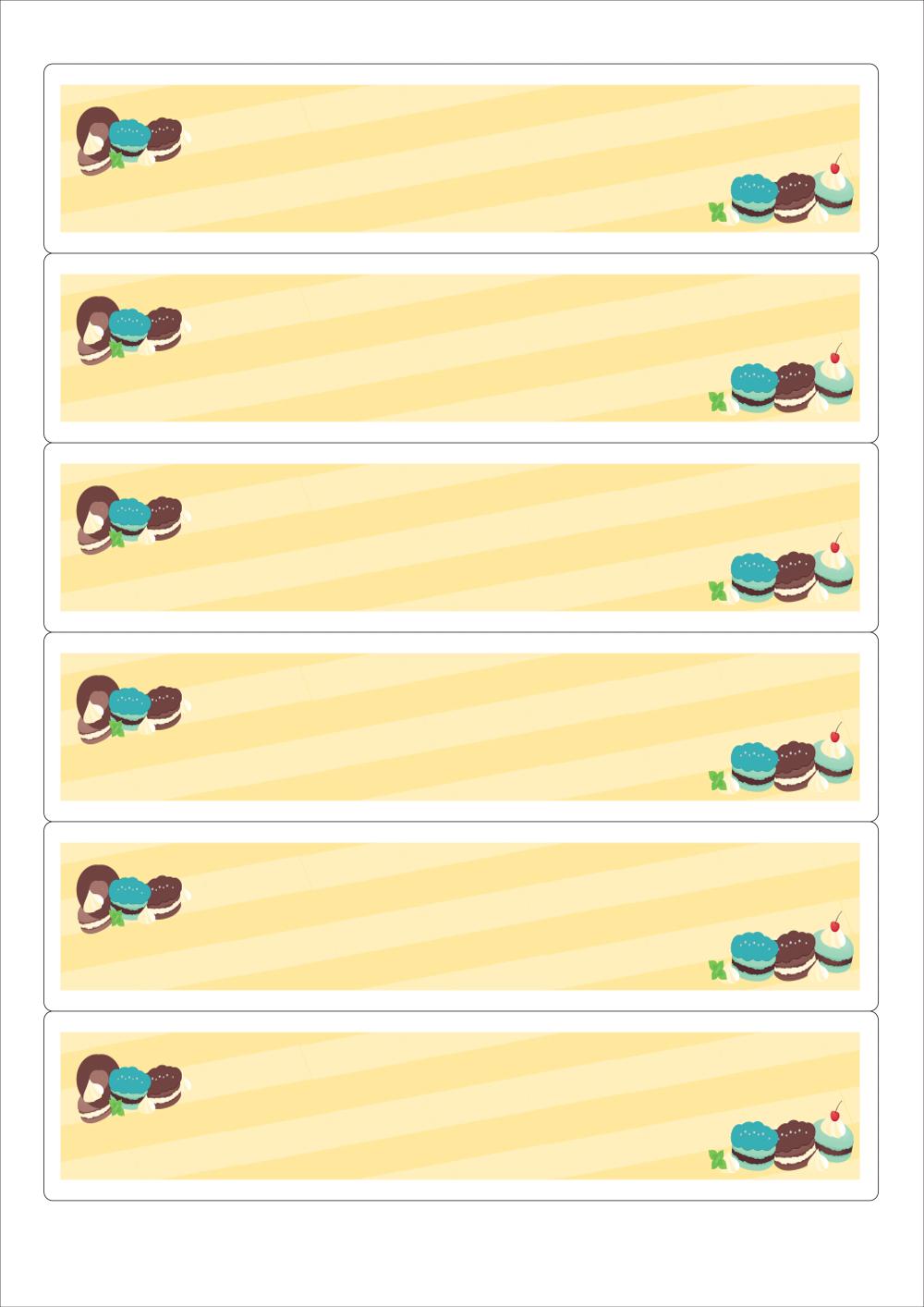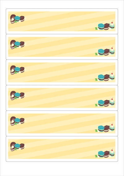 디자인된 A4 라벨지 출력용 라벨스티커, 규격코드: 516, 디자인코드: DA1691(한낮의 디저트 타임), 189.6 x 43.05 (mm)