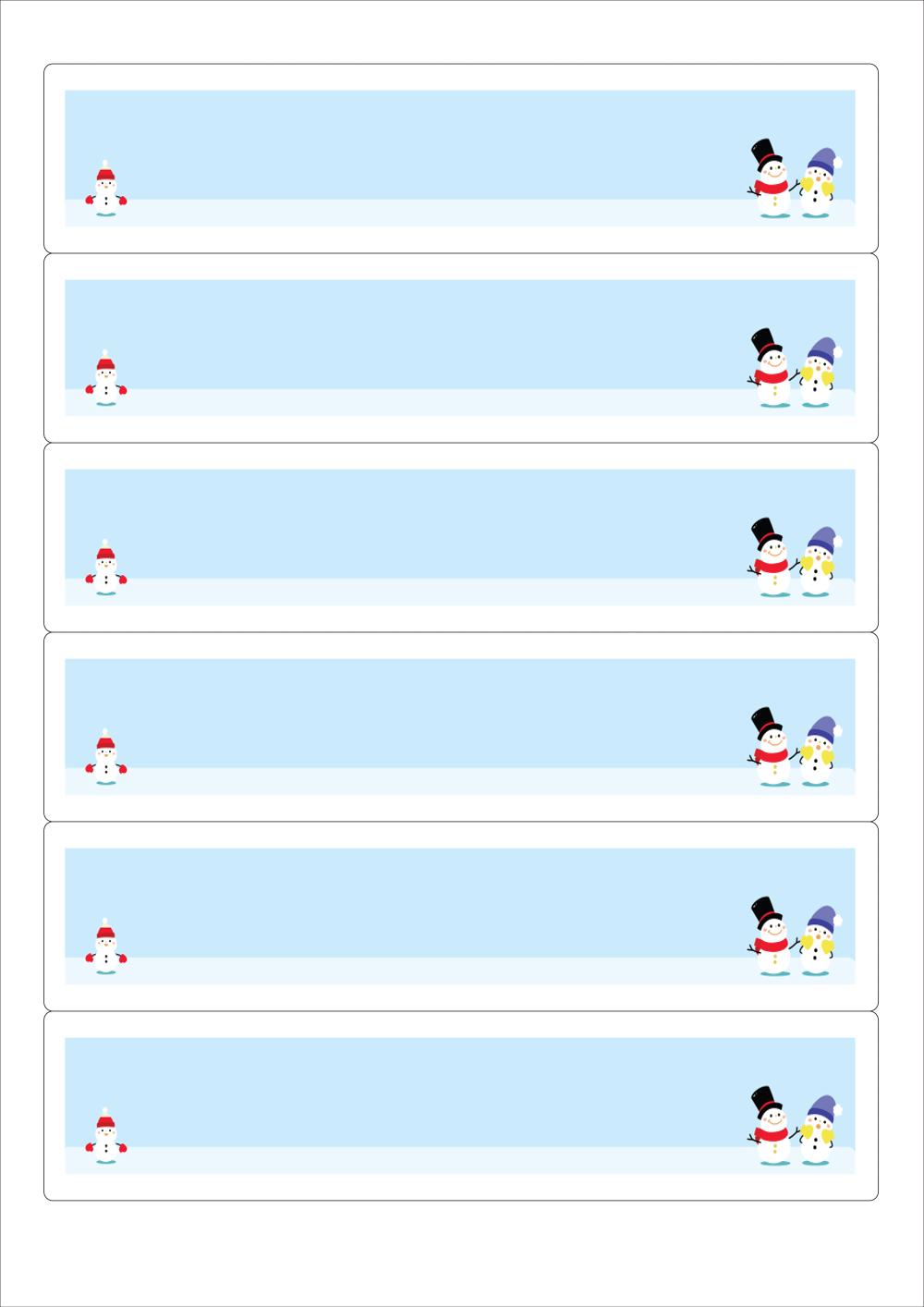 디자인된 A4 라벨지 출력용 라벨스티커, 규격코드: 516, 디자인코드: DA1737(헬로우 스노우맨), 189.6 x 43.05 (mm)