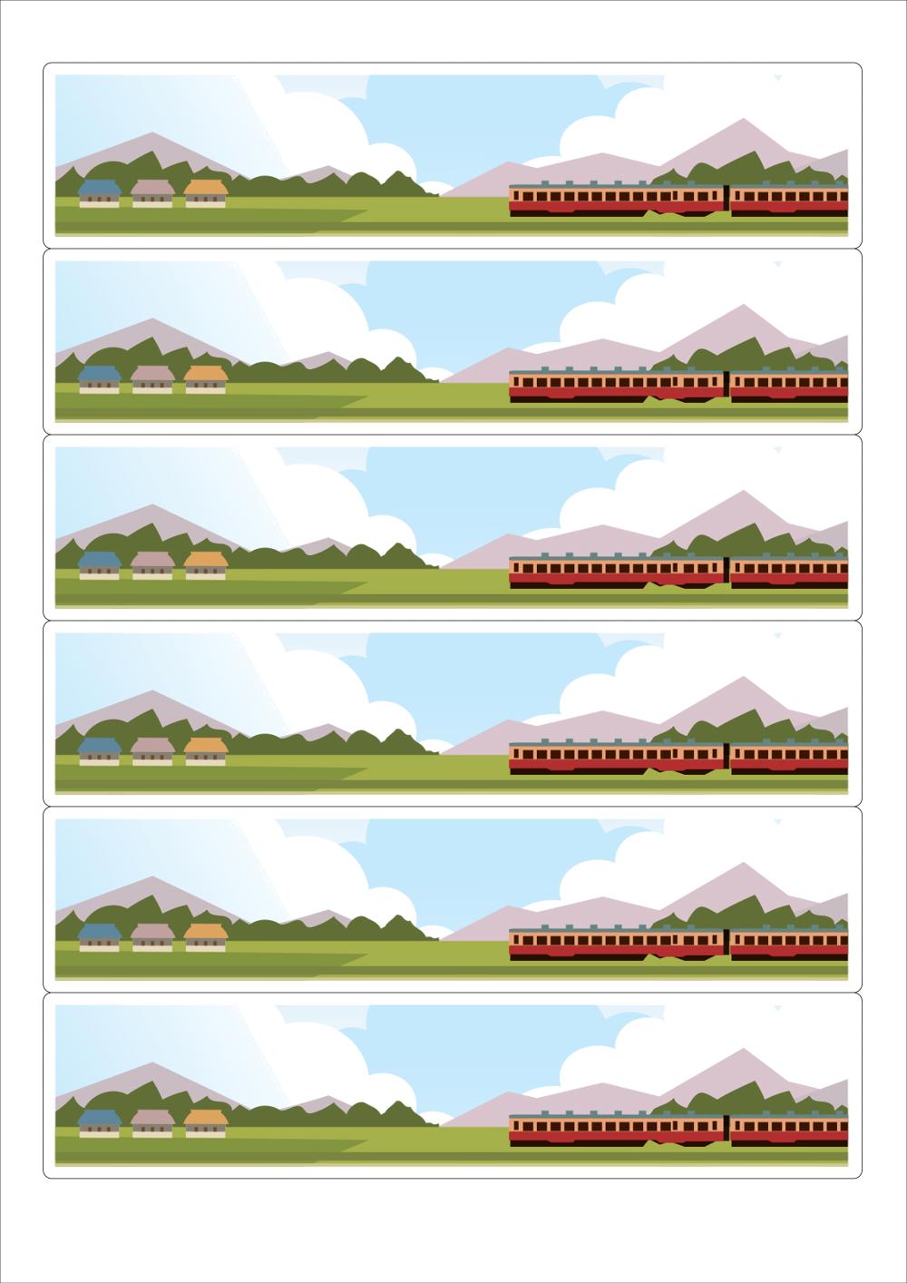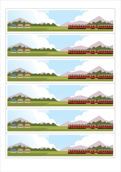 디자인된 A4 라벨지 출력용 라벨스티커, 규격코드: 516, 디자인코드: DA1747(기차여행), 189.6 x 43.05 (mm)