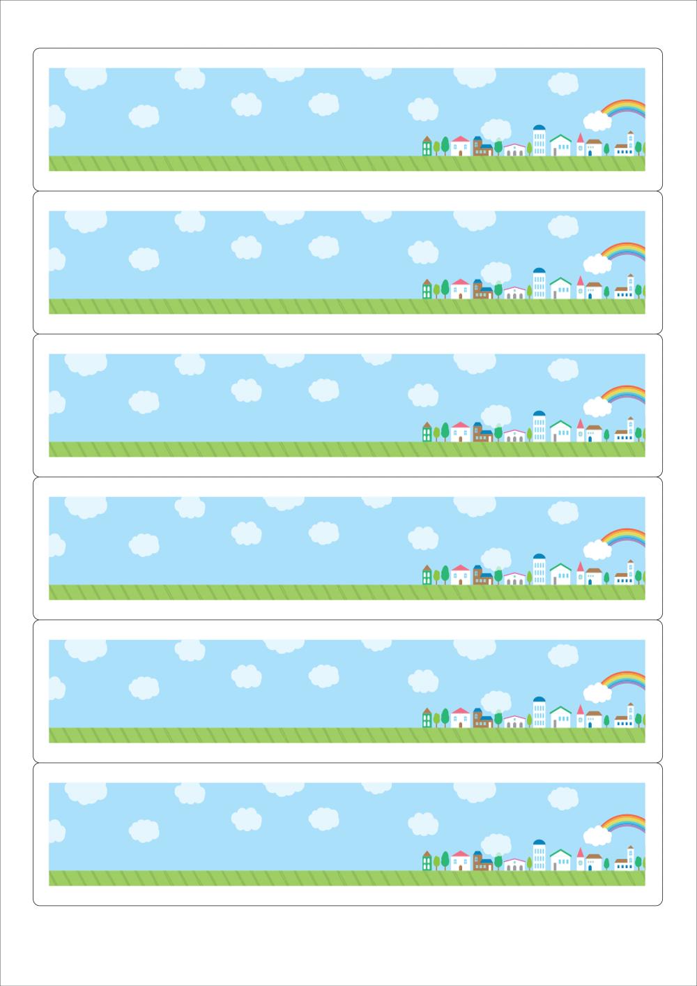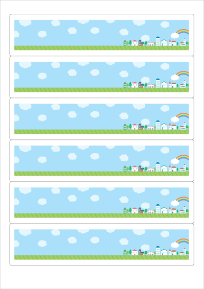 디자인된 A4 라벨지 출력용 라벨스티커, 규격코드: 516, 디자인코드: DA1763(무지개 마을), 189.6 x 43.05 (mm)