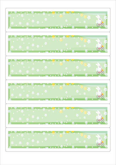 디자인된 A4 라벨지 출력용 라벨스티커, 규격코드: 516, 디자인코드: DA1784(토끼의 자전거), 189.6 x 43.05 (mm)