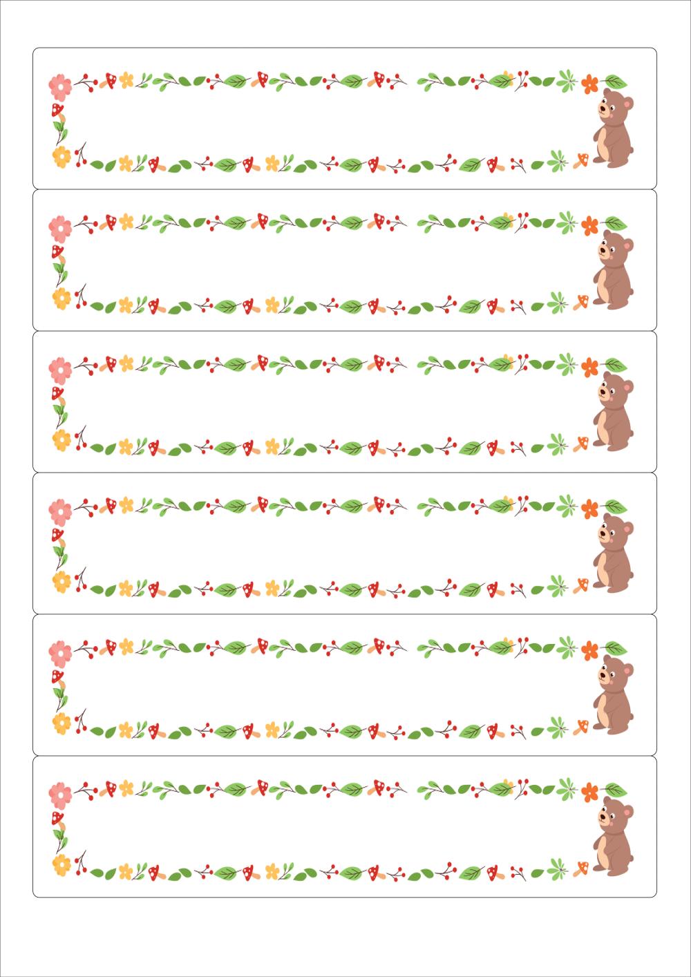 디자인된 A4 라벨지 출력용 라벨스티커, 규격코드: 516, 디자인코드: DA1820(귀여운 곰돌이 발라드), 189.6 x 43.05 (mm)