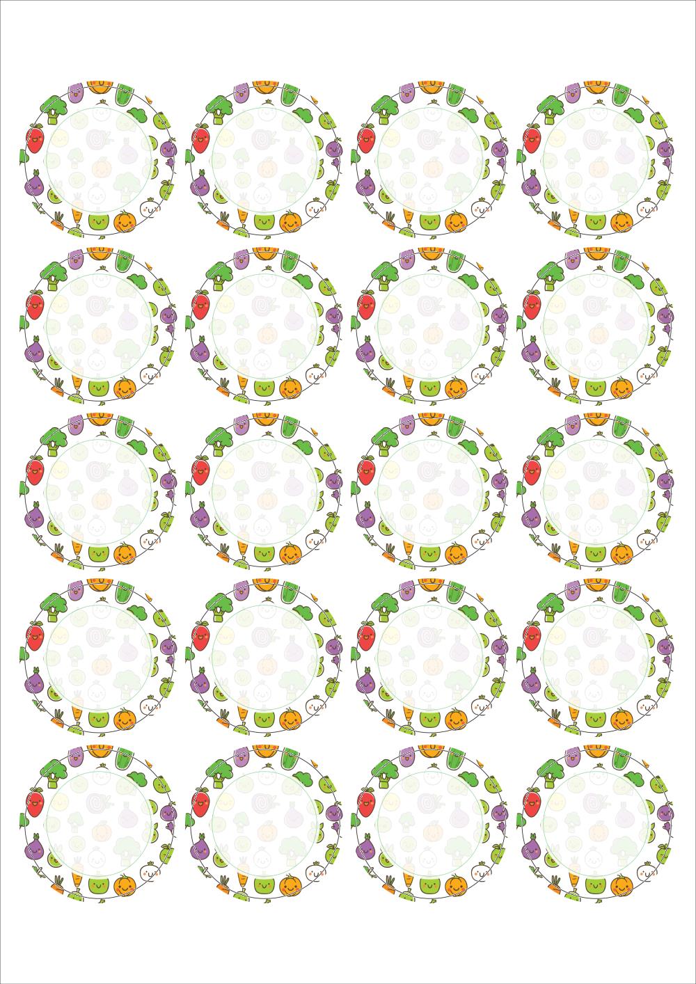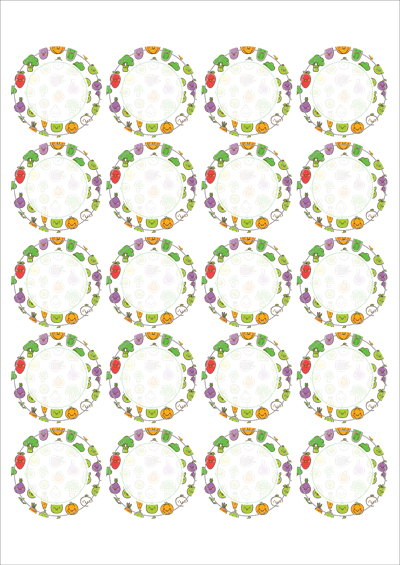 디자인된 A4 라벨지 출력용 라벨스티커, 규격코드: 520, 디자인코드: DA1377(건강한 야채 이야기), Φ45 (mm) 원형