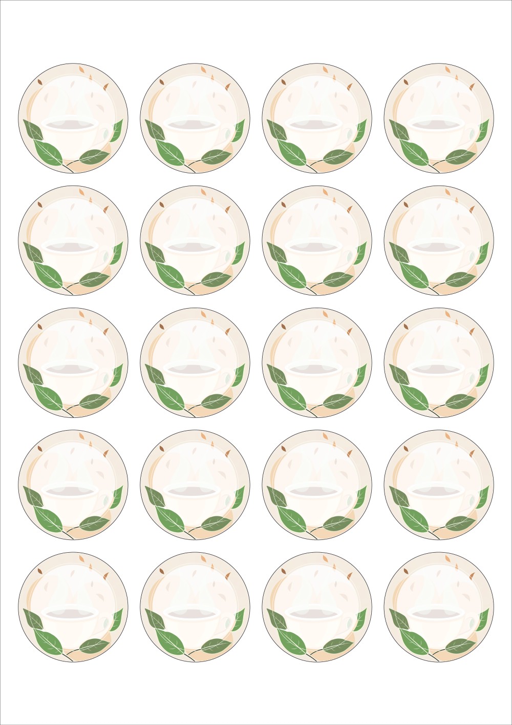 디자인된 A4 라벨지 출력용 라벨스티커, 규격코드: 520, 디자인코드: DA1415(힐링의 시간), Φ45 (mm) 원형