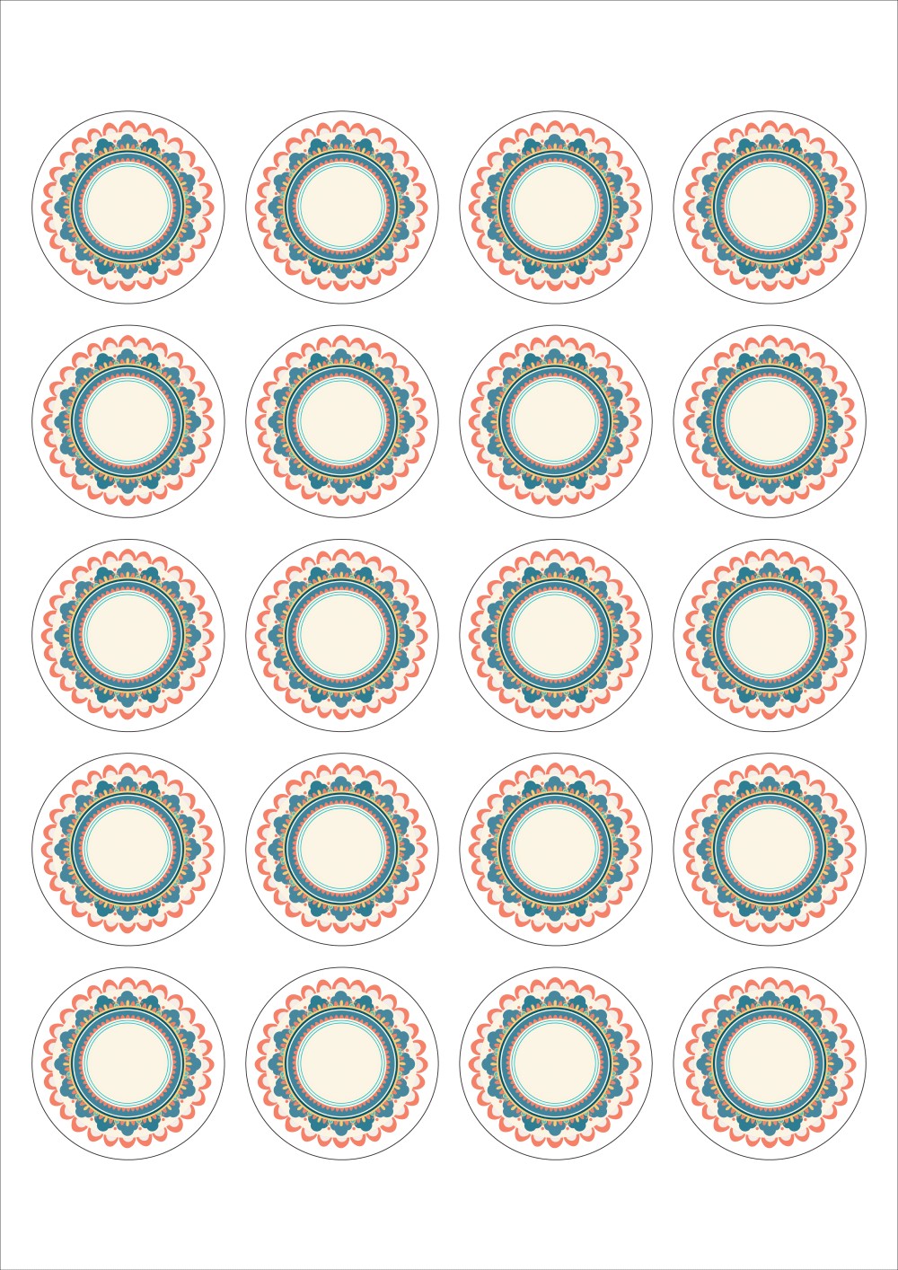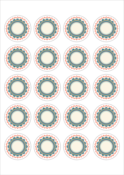 디자인된 A4 라벨지 출력용 라벨스티커, 규격코드: 520, 디자인코드: DA1418(단청 받침), Φ45 (mm) 원형