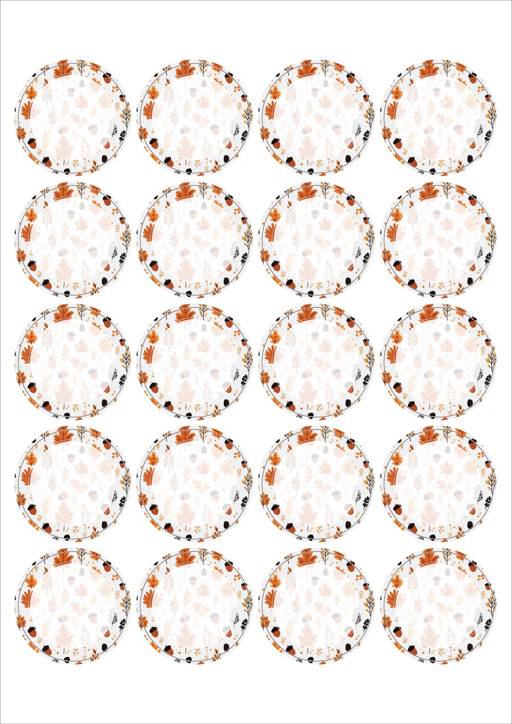 디자인된 A4 라벨지 출력용 라벨스티커, 규격코드: 520, 디자인코드: DA1442(가을 메세지 프레임 1), Φ45 (mm) 원형