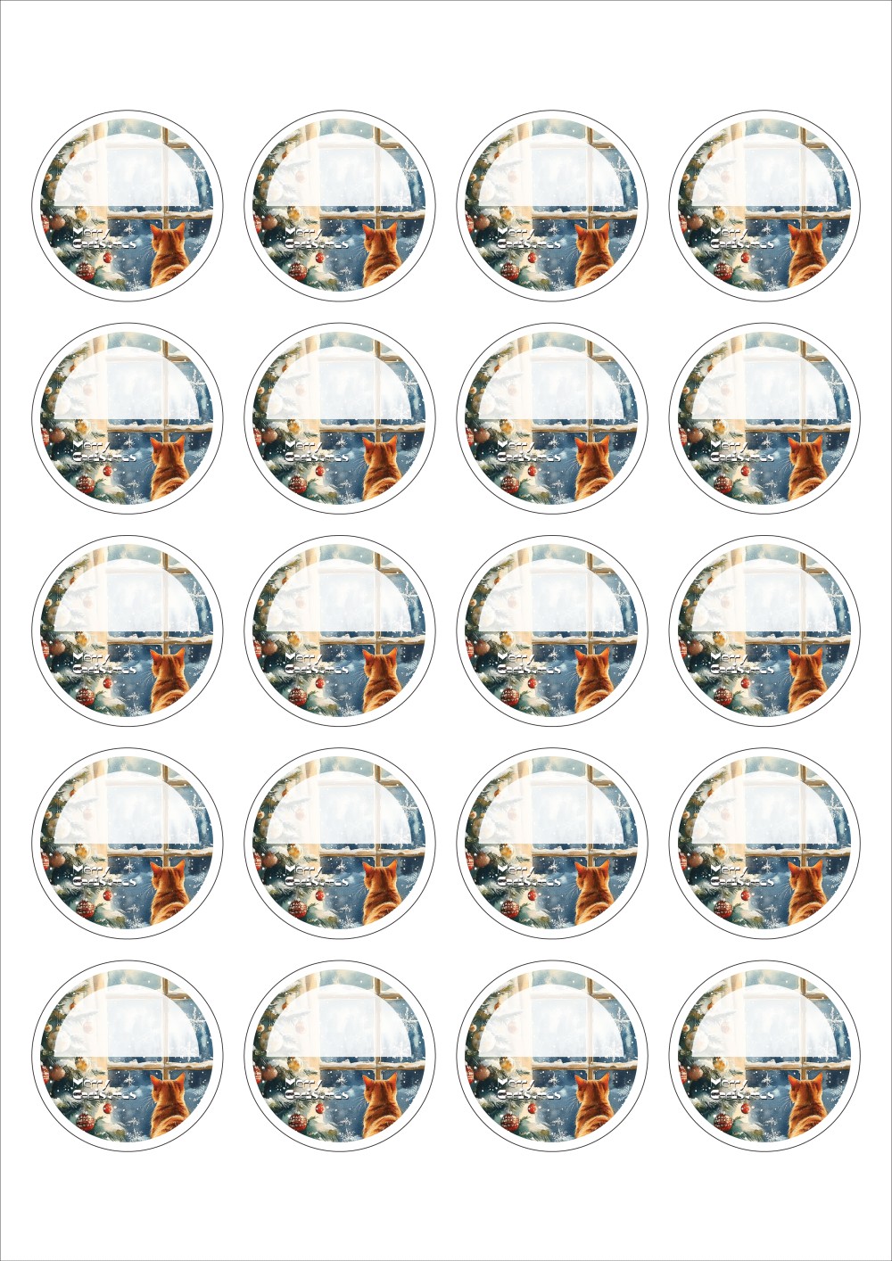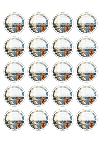 디자인된 A4 라벨지 출력용 라벨스티커, 규격코드: 520, 디자인코드: DA1496(메리크리스마스냥!), Φ45 (mm) 원형