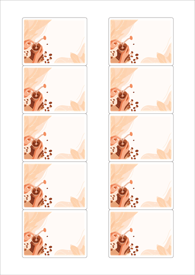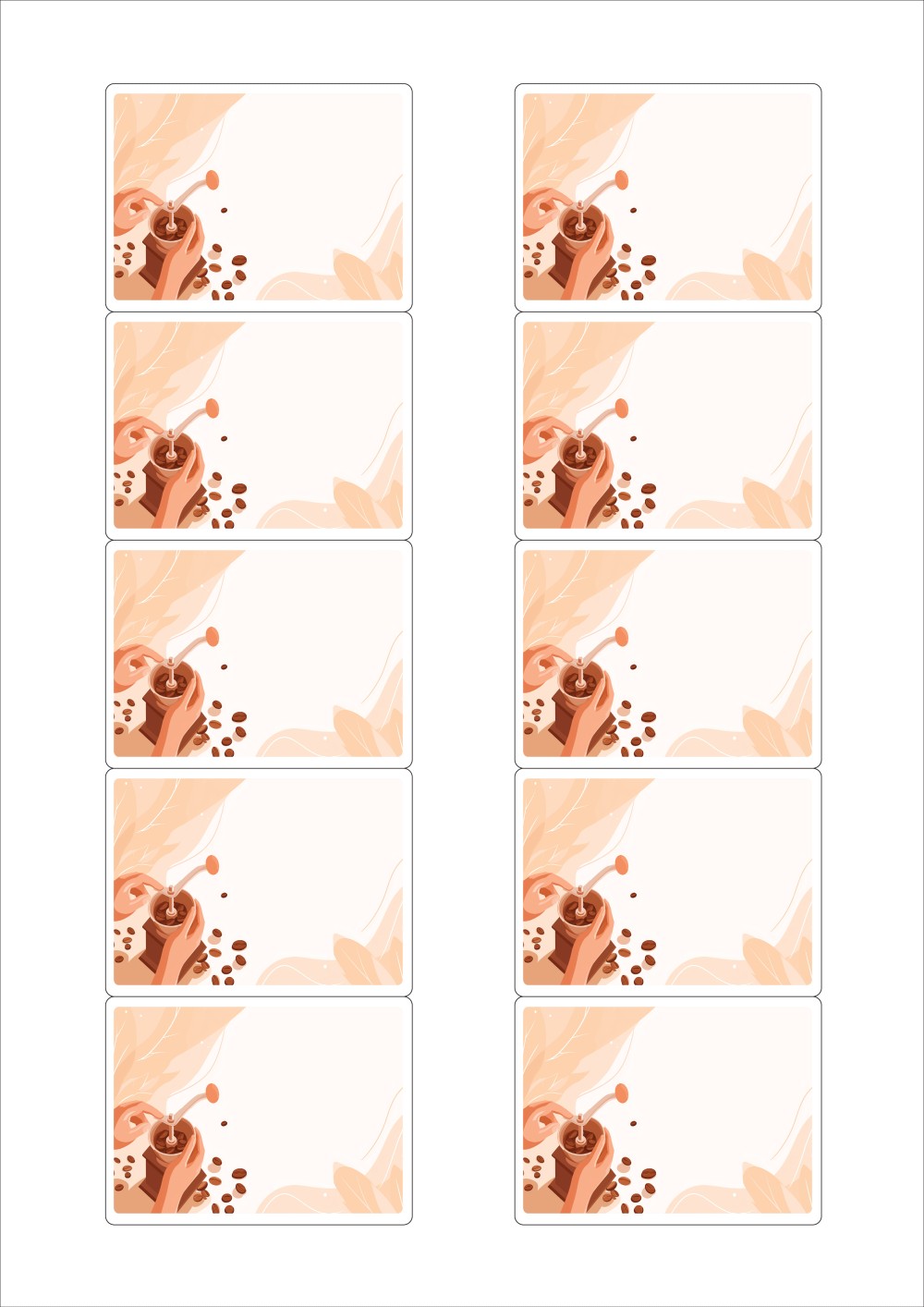 디자인된 A4 라벨지 출력용 라벨스티커, 규격코드: 525, 디자인코드: DA1411(향긋한 커피타임), 69.7 x 51.86 (mm)