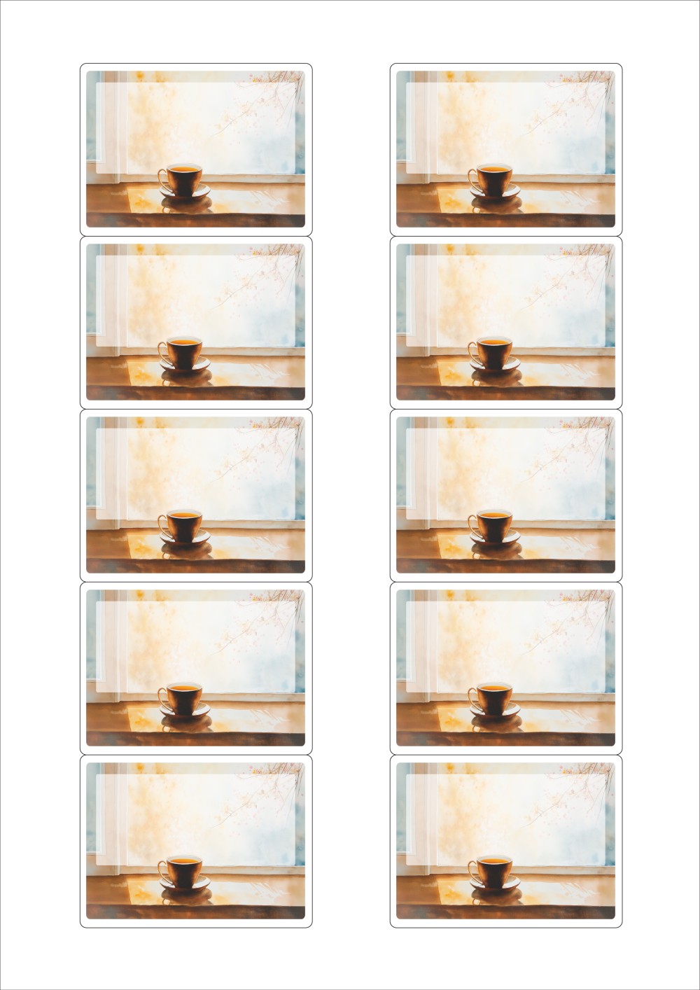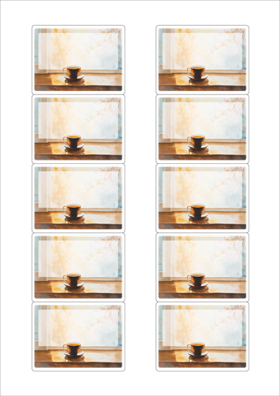 디자인된 A4 라벨지 출력용 라벨스티커, 규격코드: 525, 디자인코드: DA1425(가을날의 카페 창가에서), 69.7 x 51.86 (mm)